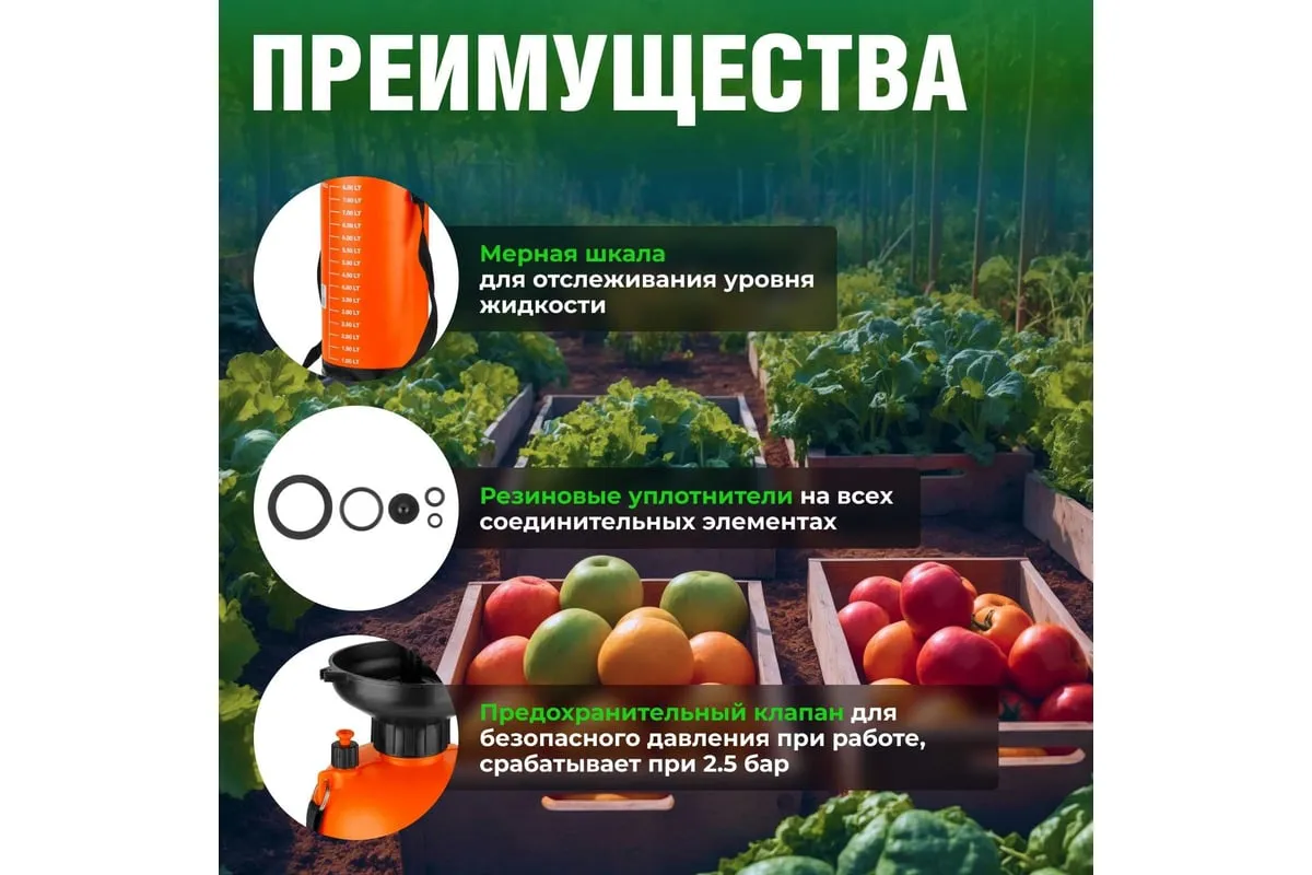 Предусмотрен плечевой ремень для простоты переноски опрыскивателя по участку.