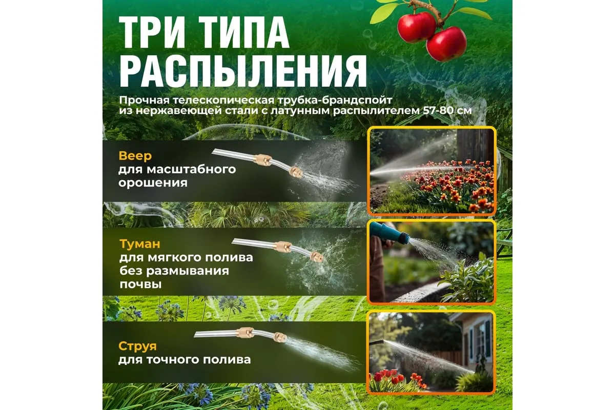 Регулируемая форсунка позволяет подобрать оптимальную струю, от сильной струи до мелкодисперсного тумана.