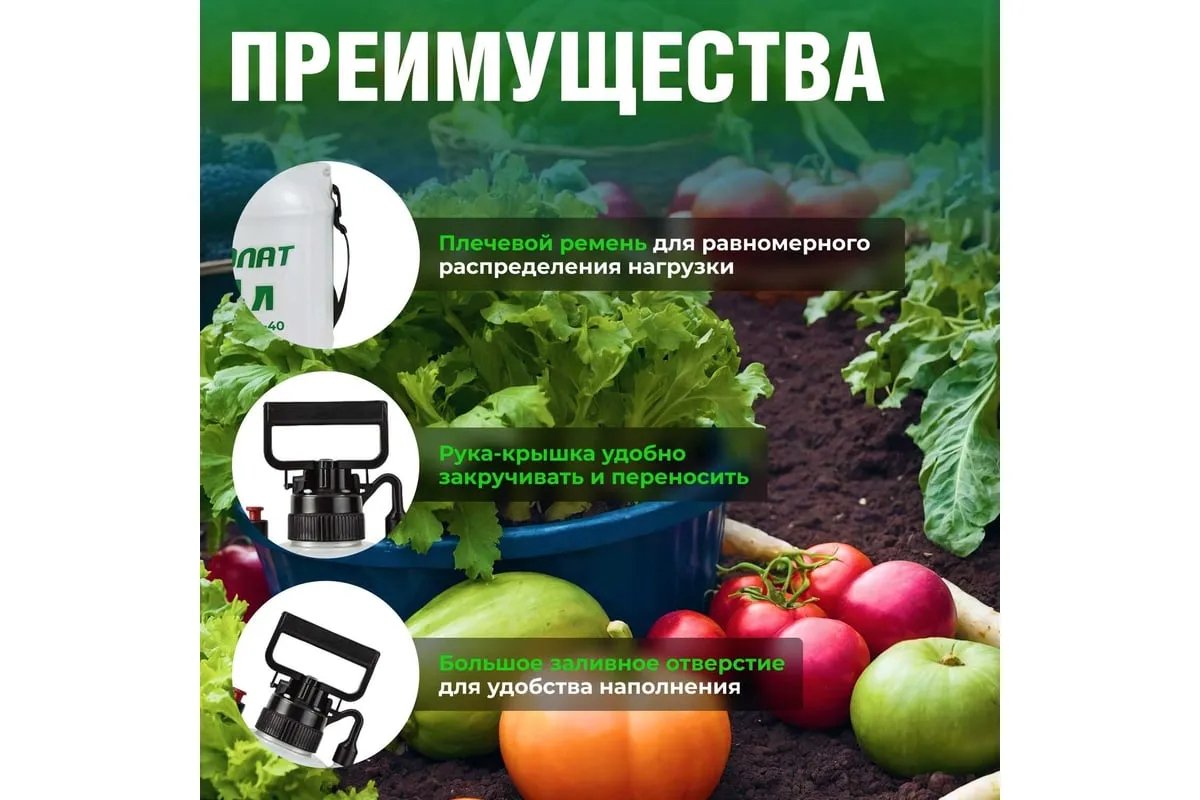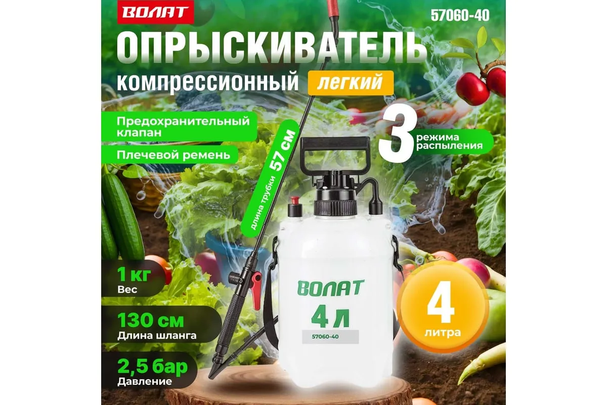 Плечевой опрыскиватель ВОЛАТ 4 л 57060-40 предназначен для обработки растений средствами защиты, гербицидами и жидкими удобрениями. Удобен для использования в садах, огородах, на плантациях и лесопитомниках. Факел распыла регулируется от струи до тумана.