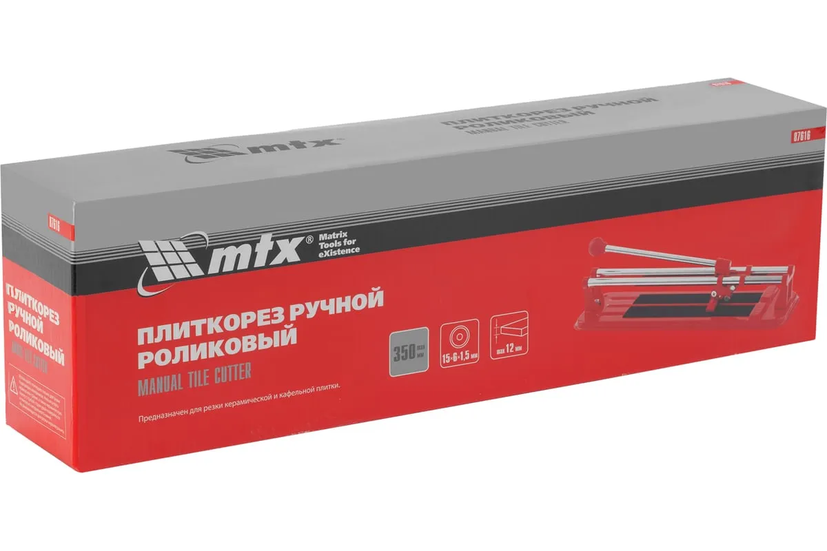 Плиткорез 350х12 мм MTX 87616 широко используется как профессионалами, так и любителями в домашних условиях. Приспособление служит для резки керамической кафельной плитки толщиной до 12 мм и длиной до 350 мм. Инструмент обладает повышенной прочностью, что значительно увеличивает его срок службы.