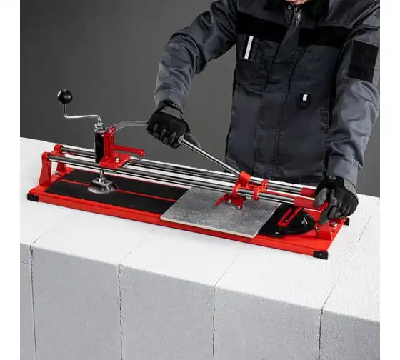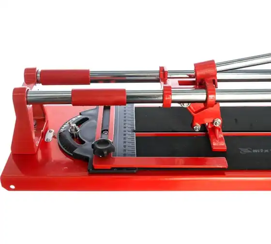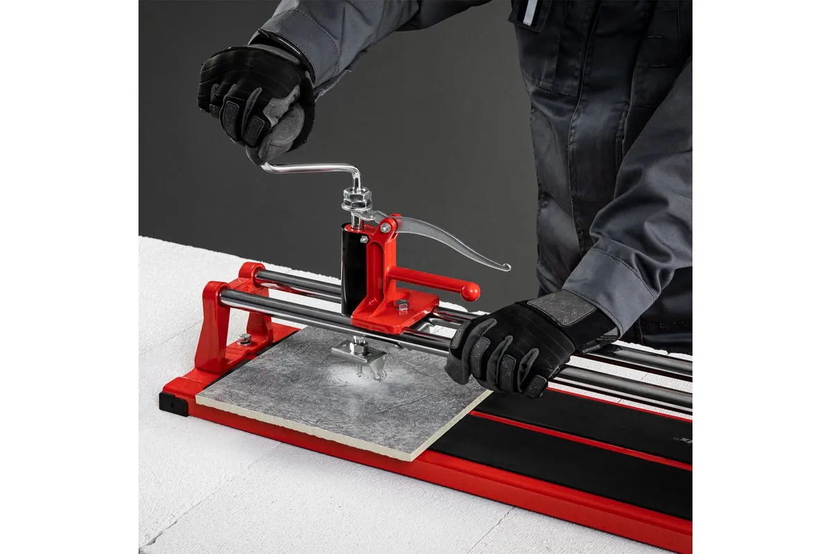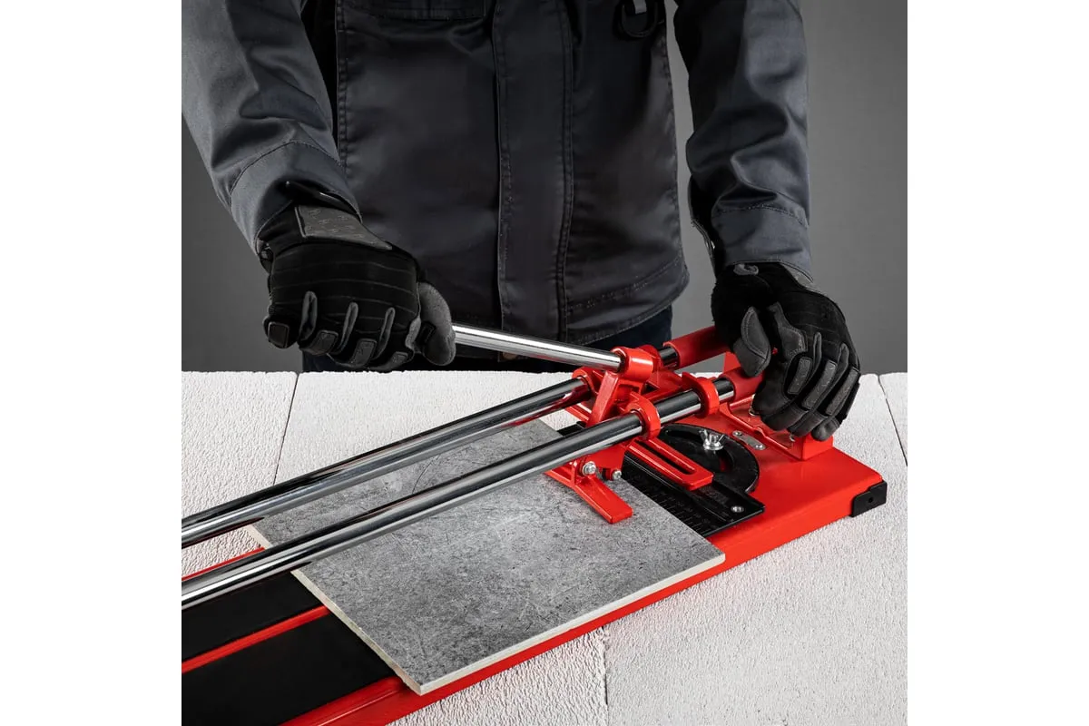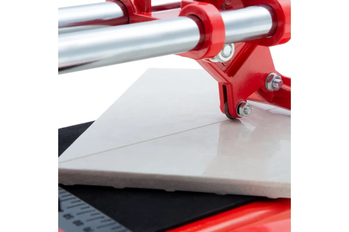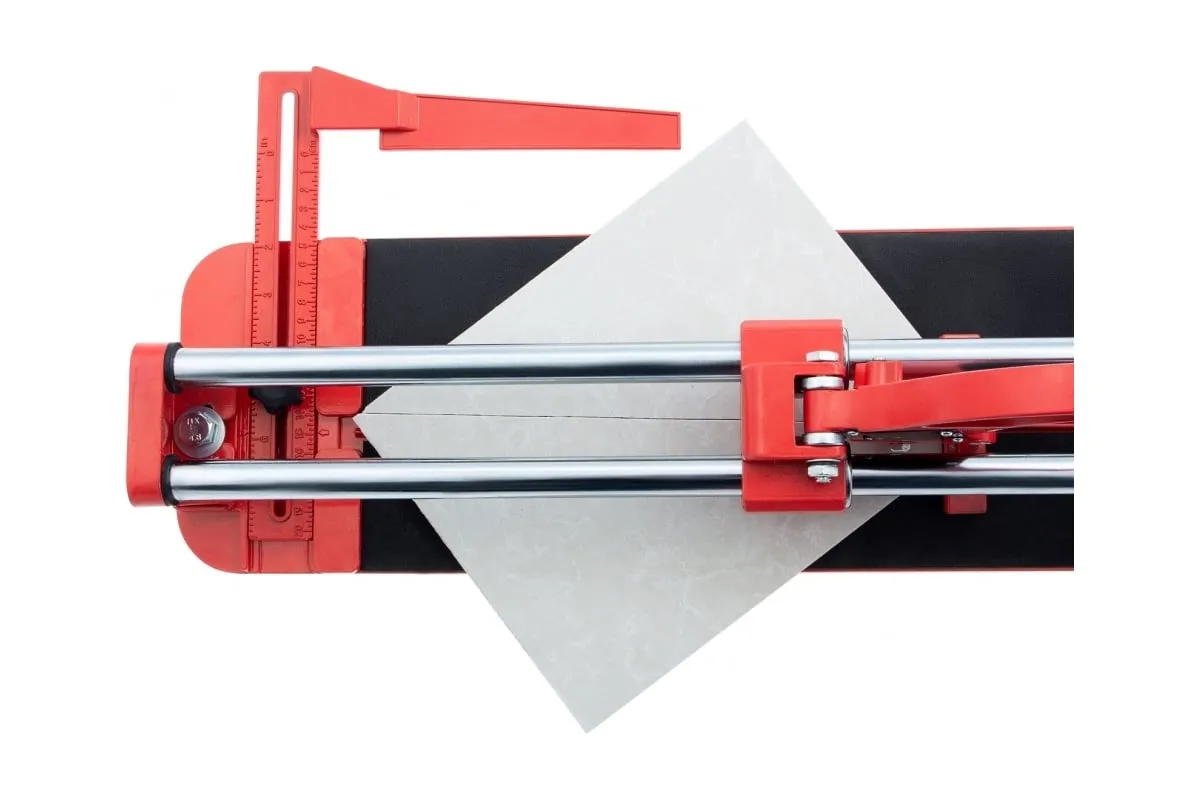 Плиткорез 600х16 мм MATRIX Балеринка 87658 обладает высоким запасом прочности и очень долговечен в использовании. Антикоррозионное покрытие надежно защищает направляющие из инструментальной стали. Благодаря приспособлению балеринка возможно получение отверстий диаметром до 80 мм. Поворотный угольник-угломер служит для резки под углом до 45 градусов.