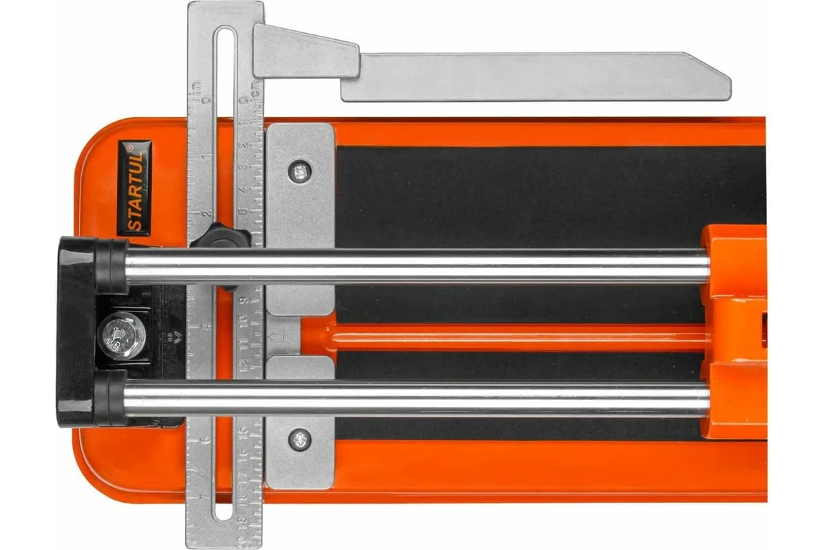 Конструкция плиткореза оснащена градуированной шкалой для разметки продольных линий и режущим элементом 6 мм.