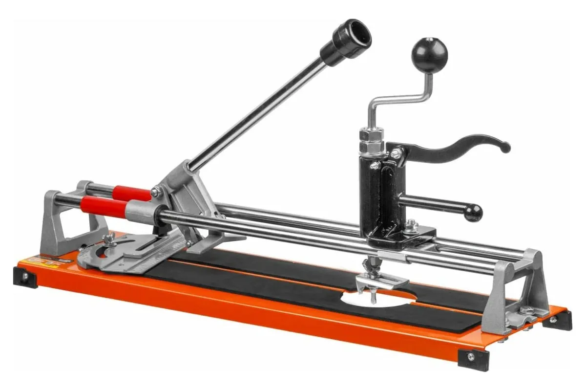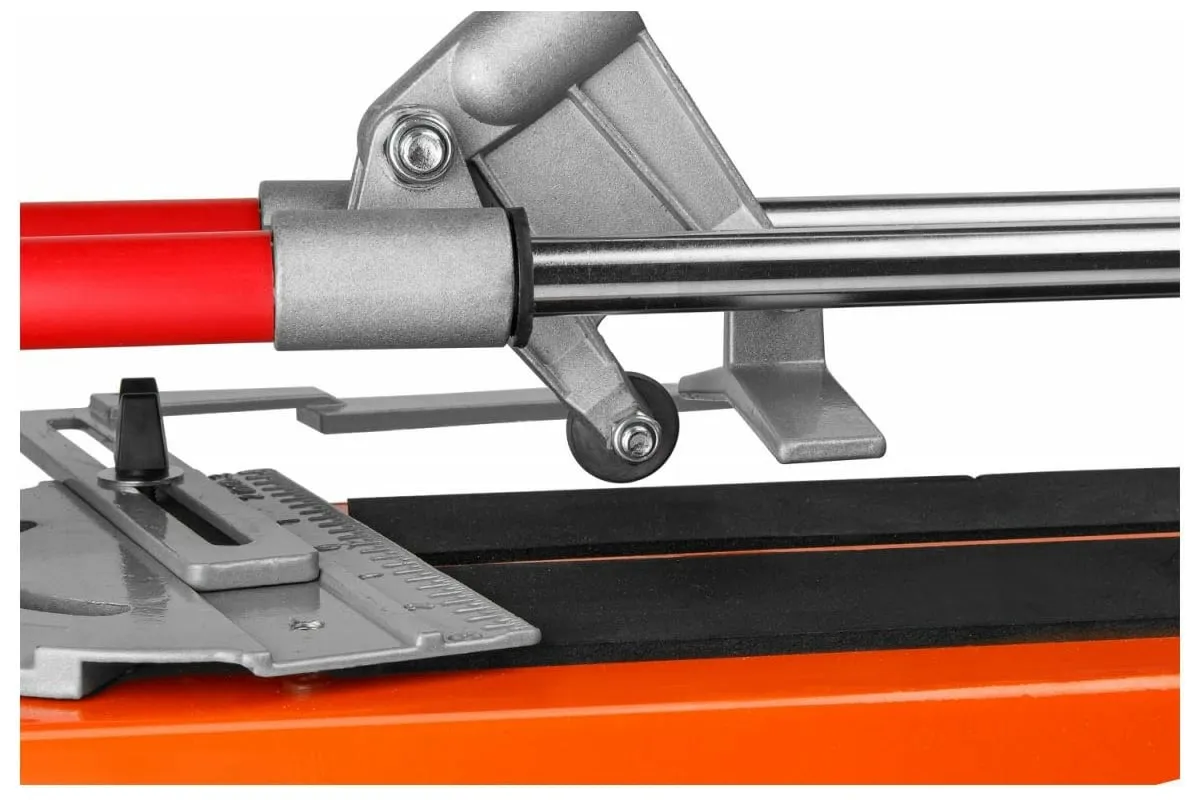 Конструкция плиткореза оснащена градуированной шкалой для разметки продольных линий и режущим элементом 6 мм.