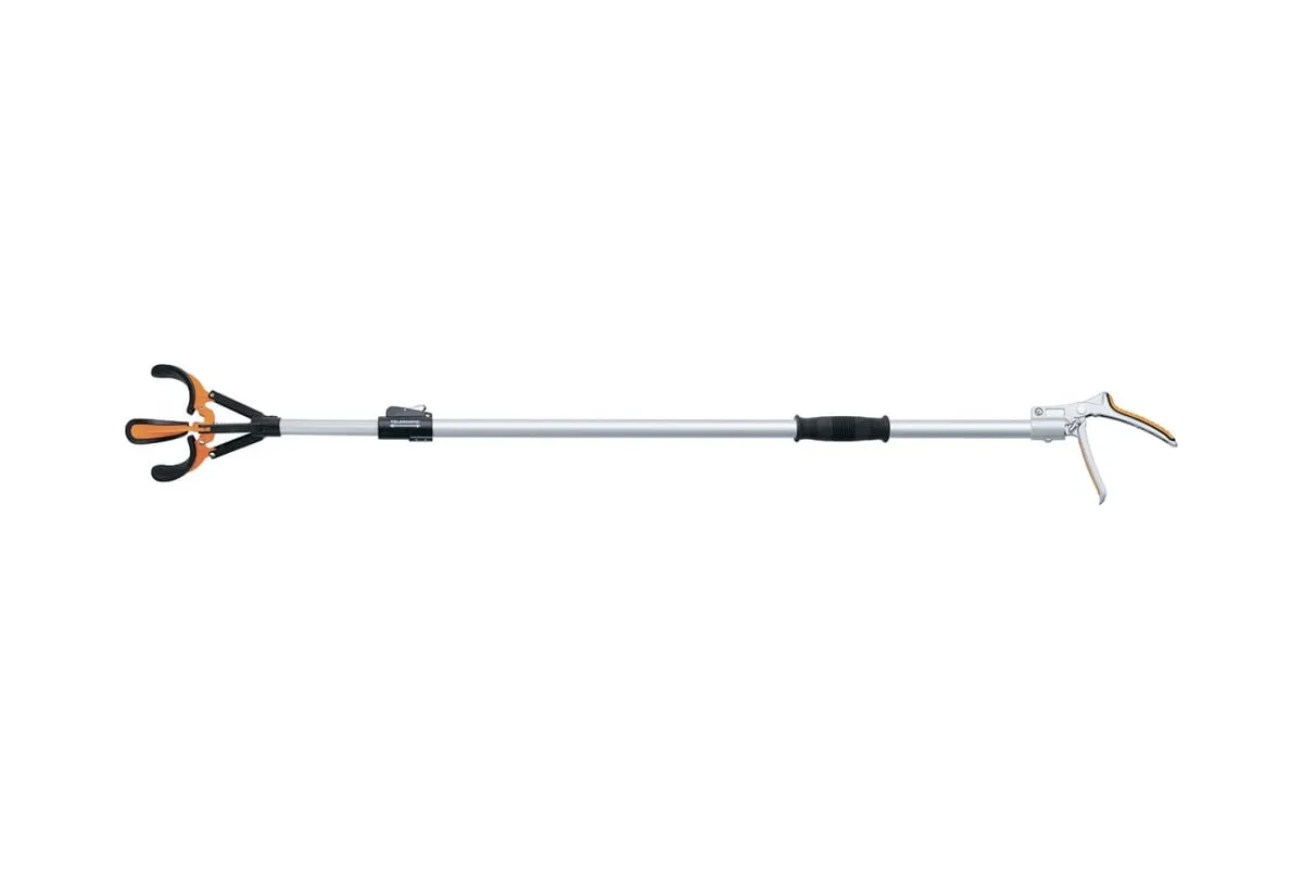 Плодосъемник с захватом Palisad LUXE 64446 длиной 1370-2060 мм, на алюминиевой телескопической штанге, предназначен для сбора плодов, находящихся на значительной высоте. Обеспечивает надежный захват — при нажатии на ручку пластины смыкаются вокруг фрукта, после чего его можно опустить вниз и извлечь из плодосъемника. Приспособление способно удерживать плоды диаметром до 190 мм. Плодосъемник необходим во время сбора урожая на приусадебном участке.