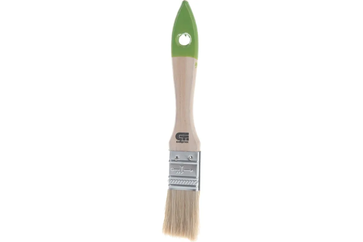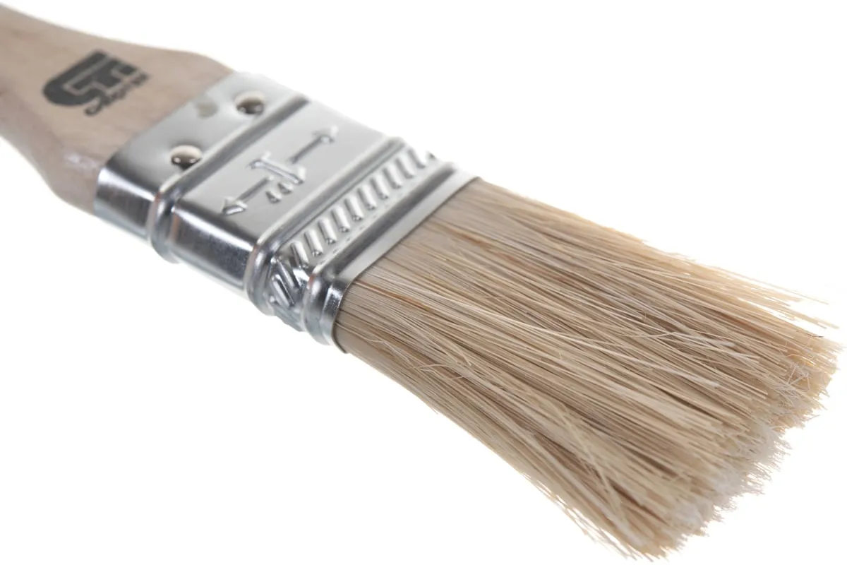 Плоская кисть Сибртех 82261, 25 мм, с натуральной щетиной и деревянной ручкой, понадобится при окрашивании различных поверхностей. Ширина 25 мм оптимально подходит для окрашивания углов, мелких деталей, плинтусов и рам. Свиная натуральная щетина с добавлением искусственной подходит для большинства красок, в том числе масляных и на основе растворителей.