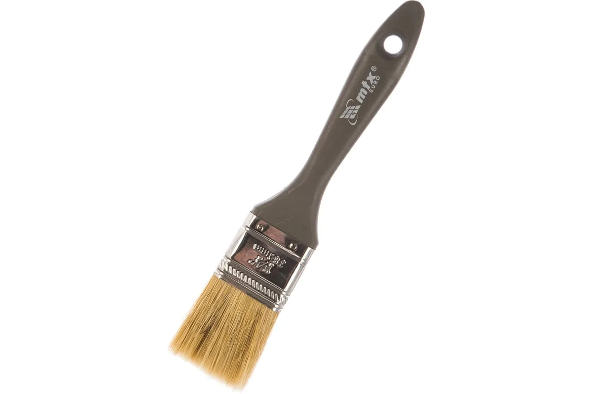 Плоская кисть MTX «Евро» 83062 шириной 1,5 дюйма, с натуральной щетиной и пластмассовой ручкой, используется для профессиональных работ по окрашиванию поверхностей. Натуральная щетина рекомендуется для нанесения агрессивных ЛКМ с содержанием растворителей. Небольшая ширина рабочей части 38 мм позволяет окрашивать труднодоступные участки без риска попадания краски на другие поверхности.