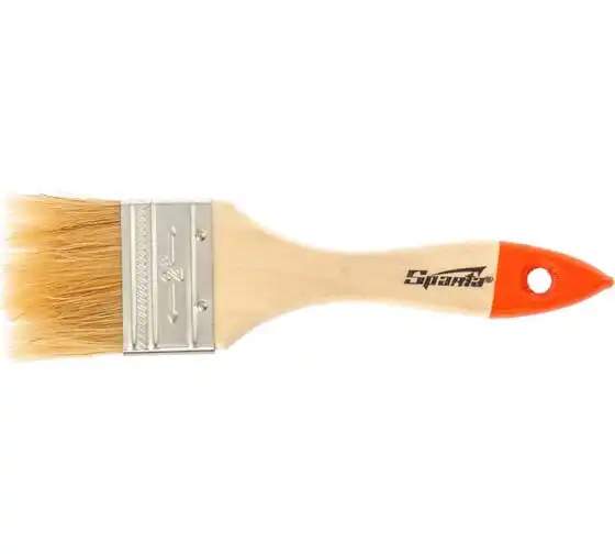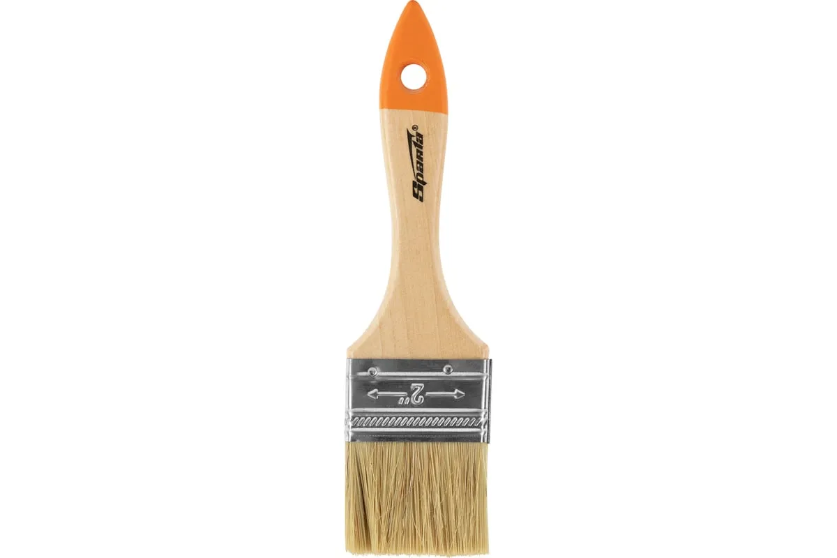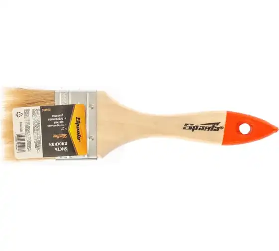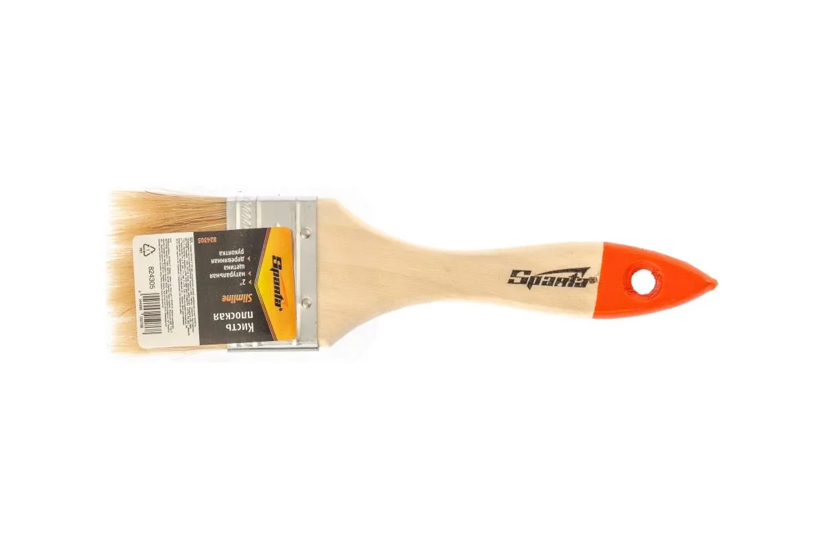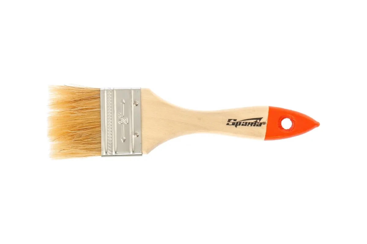 Плоская кисть Sparta Slimline 824305 шириной 2 дюйма (50 мм), с натуральной щетиной и деревянной ручкой, используется для проведения несложных малярных работ. Натуральная щетина не разрушается под воздействием агрессивных веществ, поэтому кисть можно применять для работ с масляными красками, а также с составами на основе растворителей.