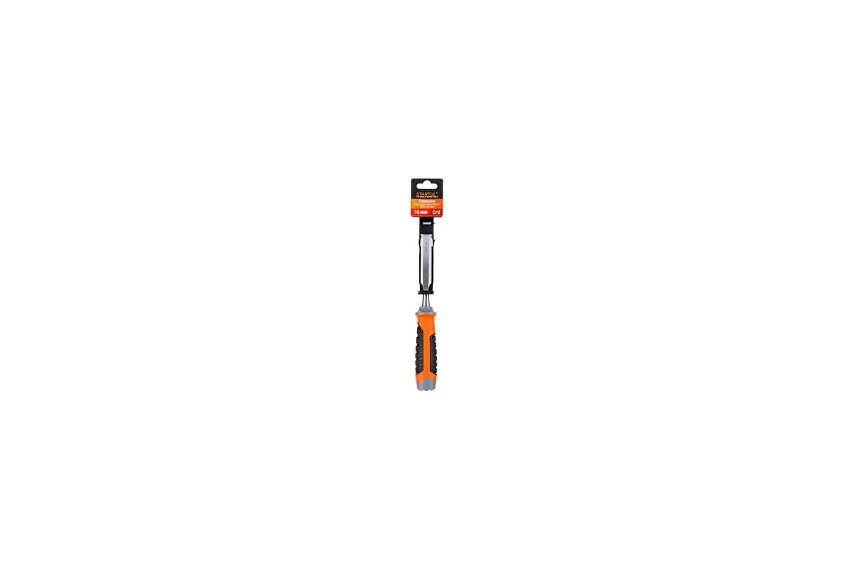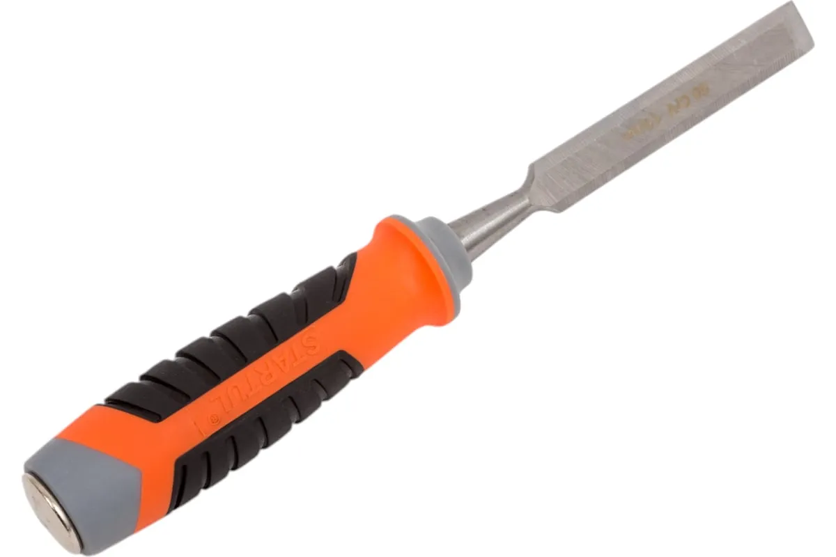 Стамеска STARTUL плоская ST4075-16 универсальна в использовании. Инструмент подойдет для работы вручную, а также вместе с молотком. Металлический тыльник безопасен в работе. Стамеска оснащена скошенными краями - это исключает застревание инструмента. Удобная профилированная рукоять значительно облегчает процесс снятия слоя древесины.