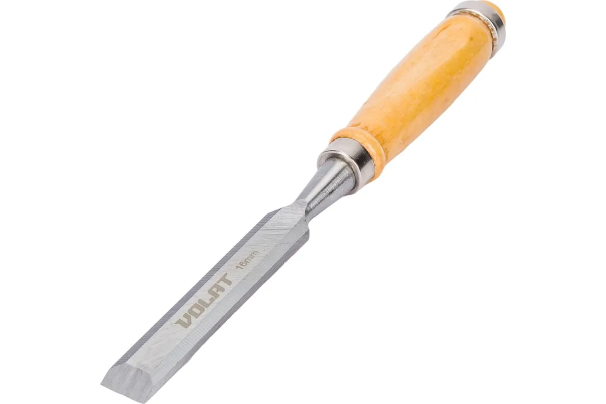 Плоская стамеска ВОЛАТ 16 мм 15050-16 предназначена для проведения столярных и плотницких работ, таких как выдалбливание пазов и гнезд, снятие фасок и шлицов. Рабочая часть выполнена из качественной углеродистой стали высокой прочности. Эргономичная деревянная рукоятка обеспечивает комфортную эксплуатацию. Прочное металлическое кольцо увеличивает срок службы инструмента.