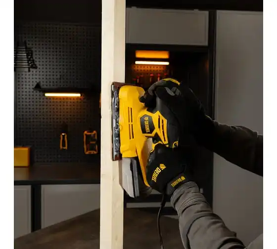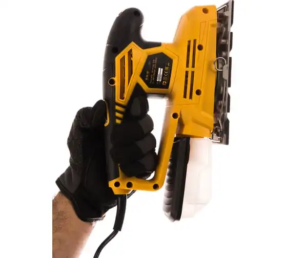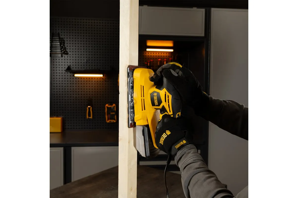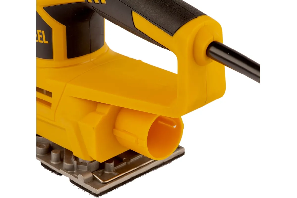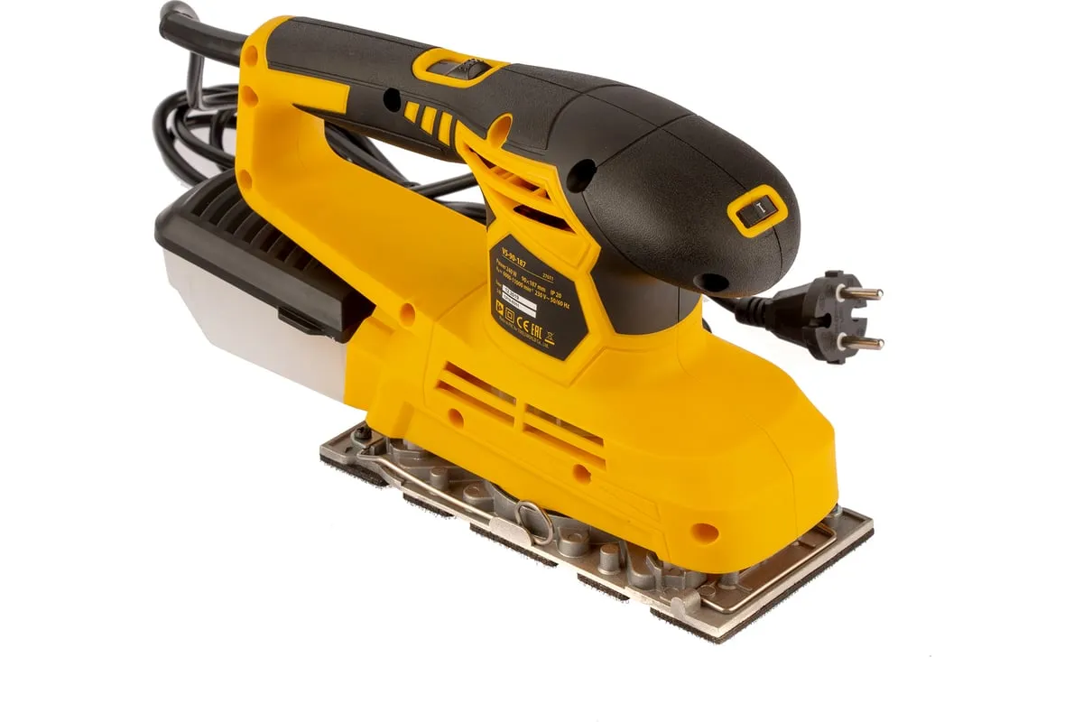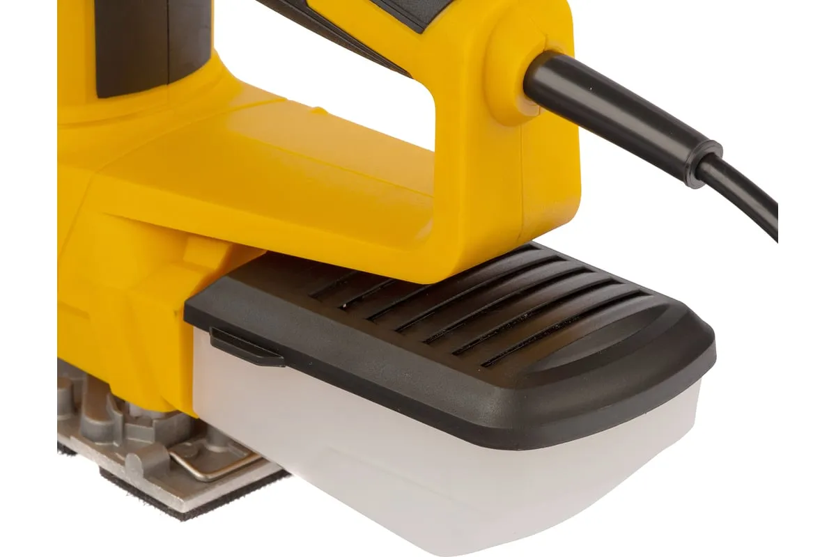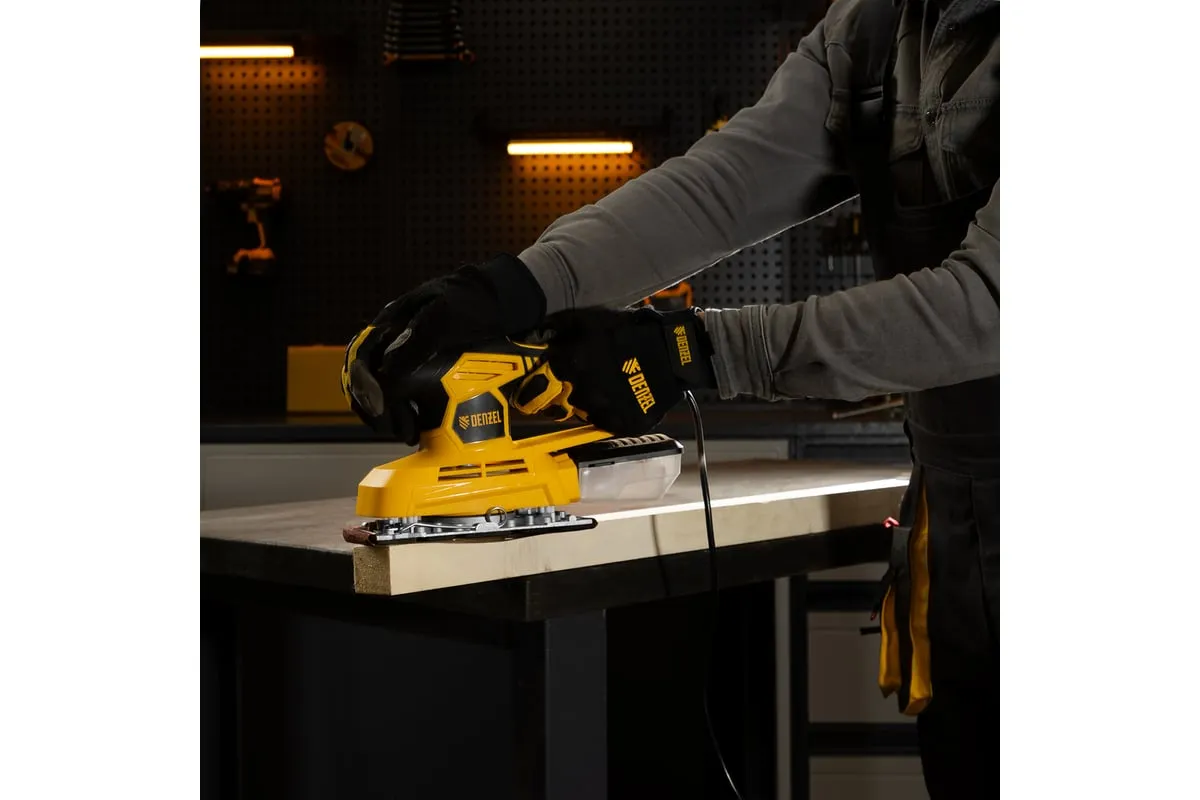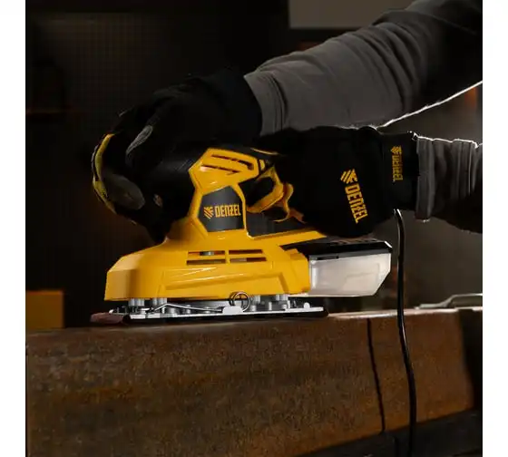 Вибрационная плоскошлифовальная машина Denzel VS-90-187 мощностью 240 Вт, с частотой колебаний подошвы 6000-11000 об/мин, подходит для сухого шлифования, зачистки и полировки поверхностей. Регулировка частоты колебаний подошвы 6000-11000 об/мин позволяет выбрать оптимальный режим работы. Размер рабочей поверхности составляет 90 х 187 мм, ход платформы — 1,6 мм, благодаря чему машина эффективно справляется с обработкой больших поверхностей.