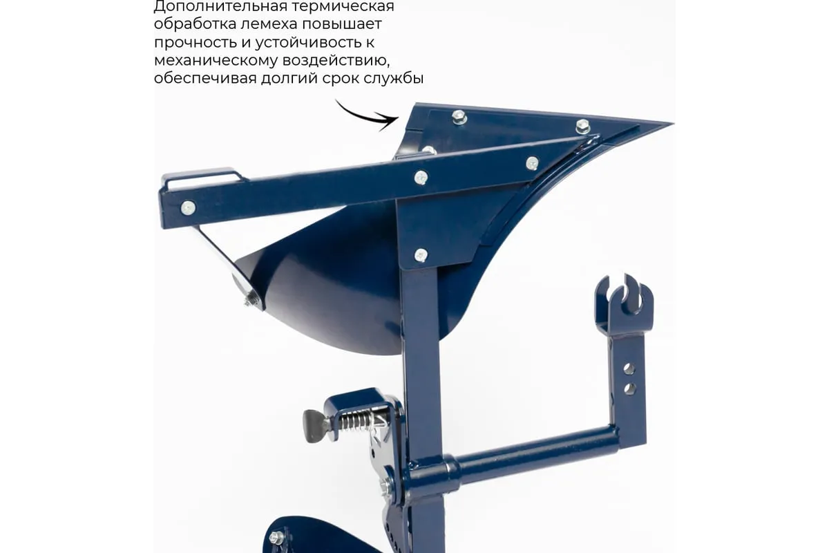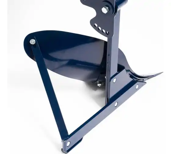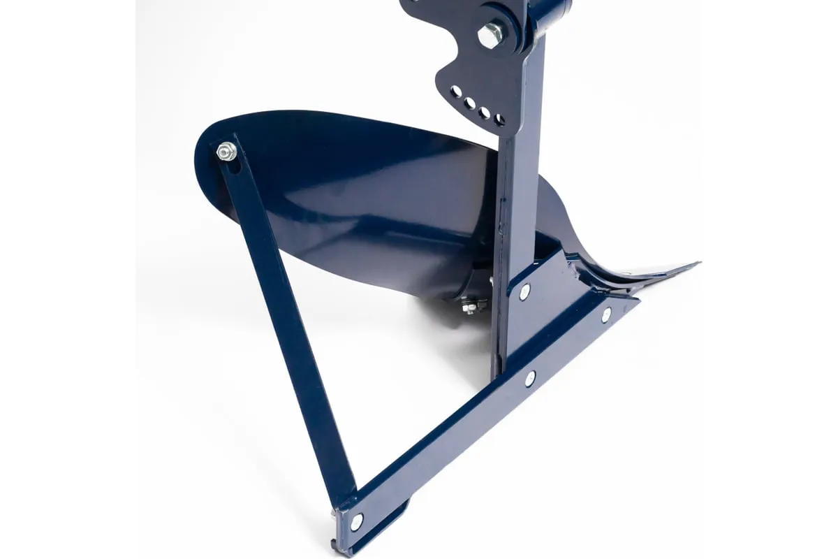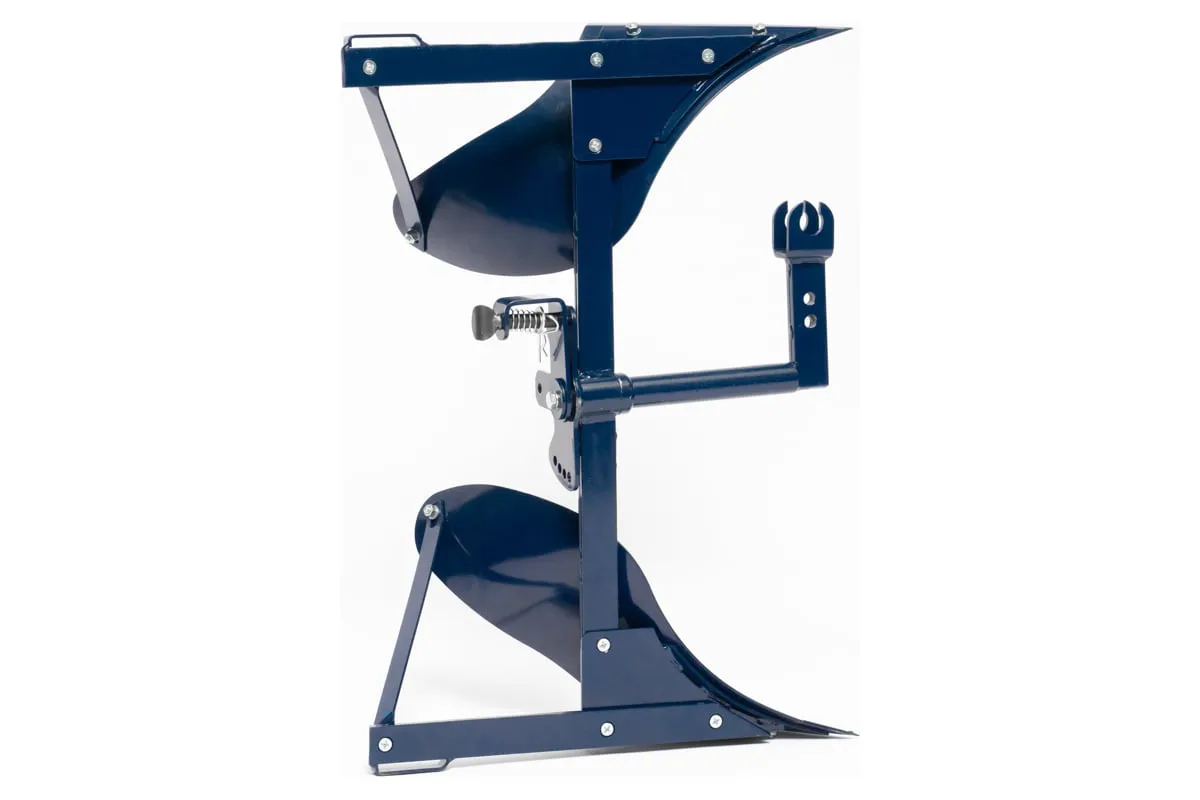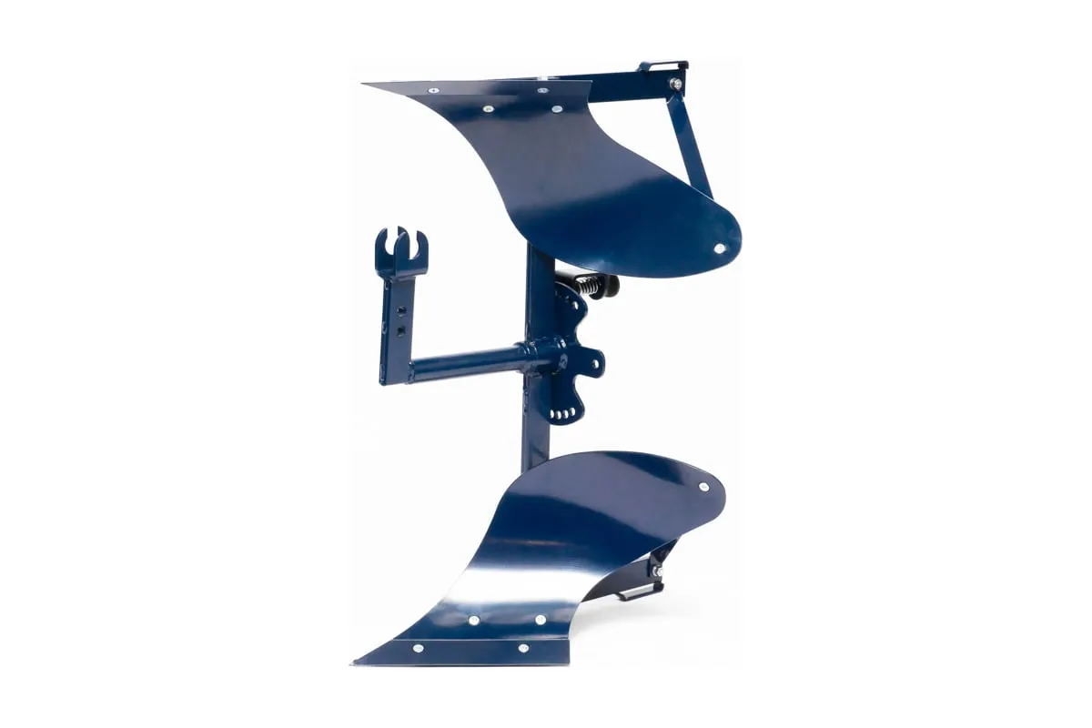 Оборотный плуг представляет собой конструкцию с двумя отвалами, расположенными на стойках зеркально относительно оси сцепа. Для установки корпуса в определенном положении имеется фиксатор.