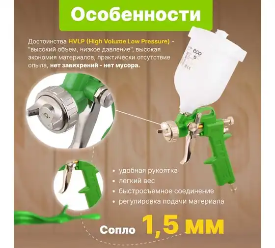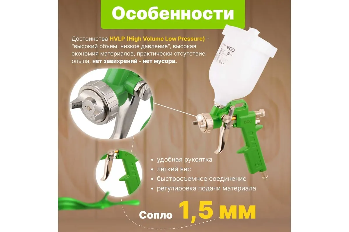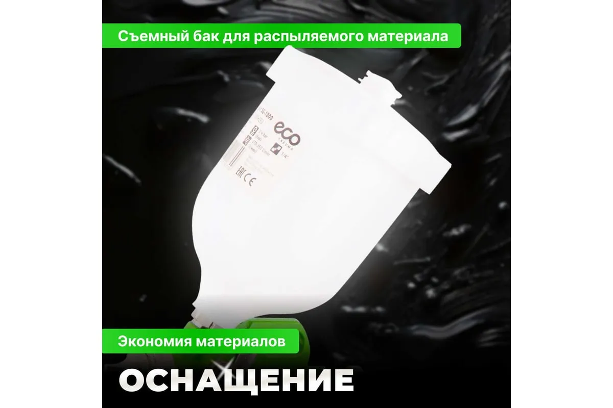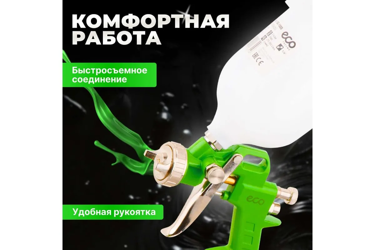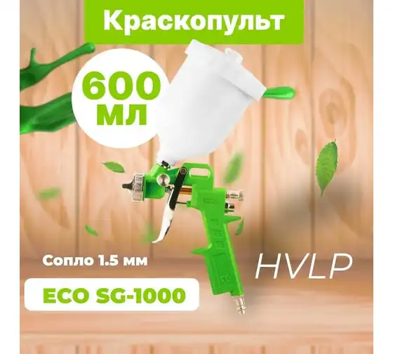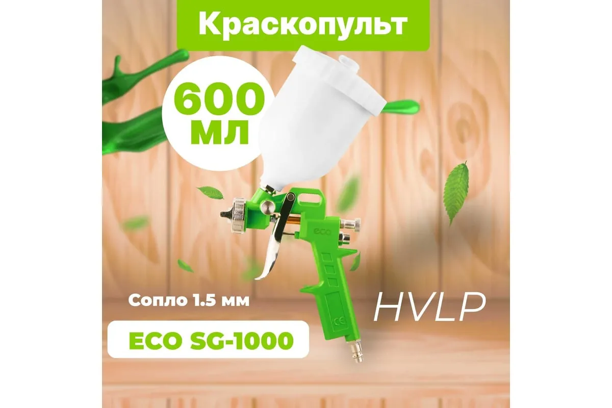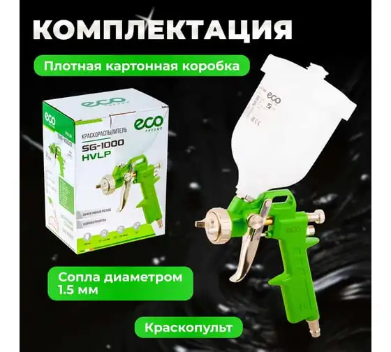 Пневматический краскопульт ECO SG-1000 SG-1000H15U предназначен для выполнения окрасочных работ методом распыления лакокрасочных материалов сжатым воздухом.