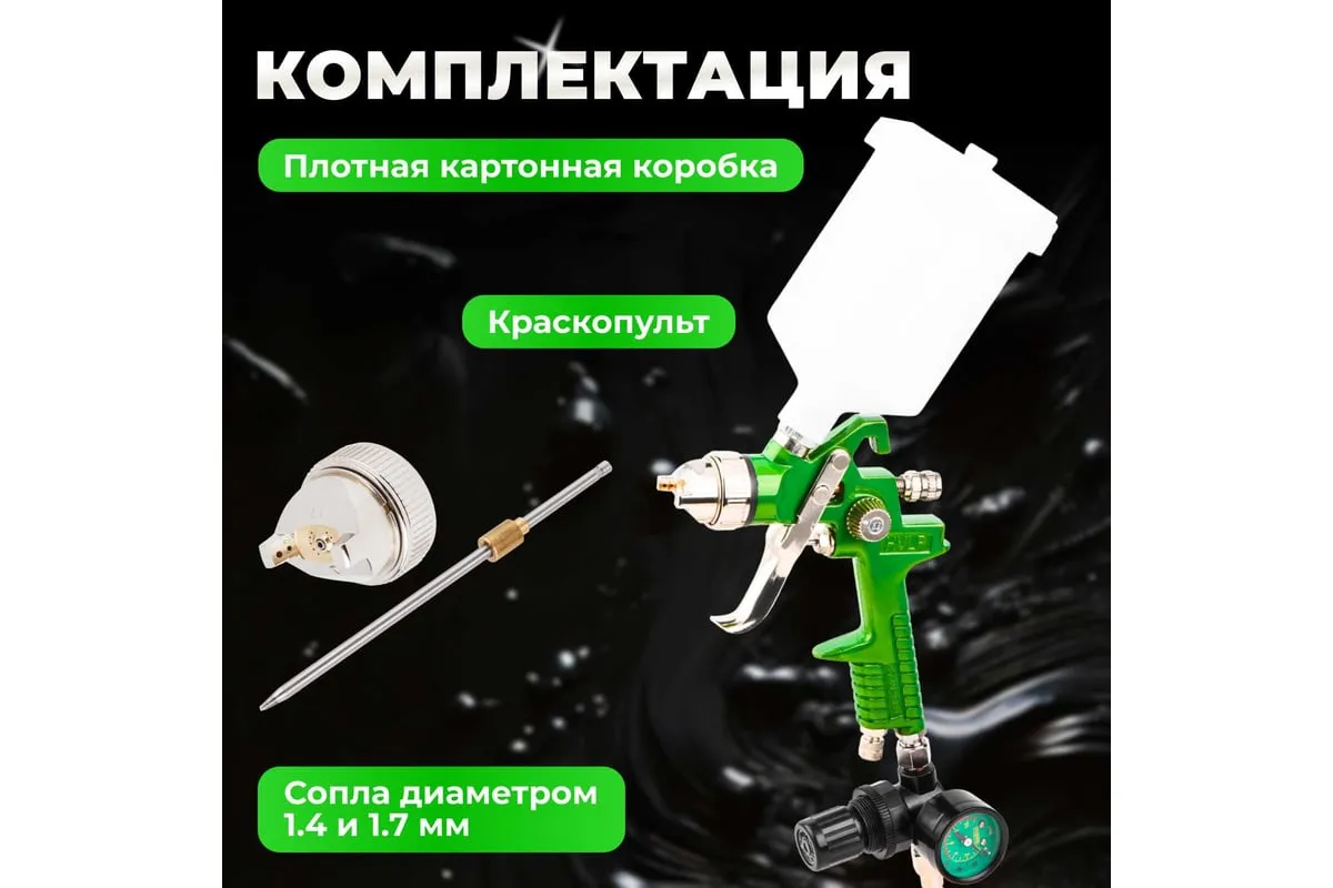 Регулятор с манометром в комплекте позволяет настроить работу краскораспылителя максимально точно.