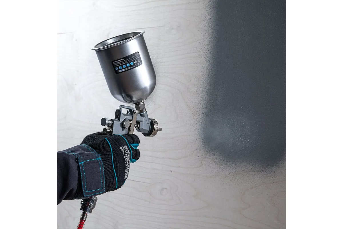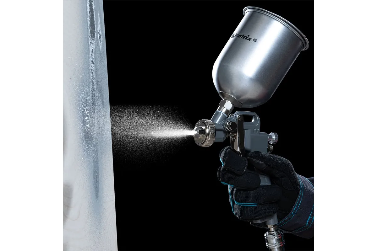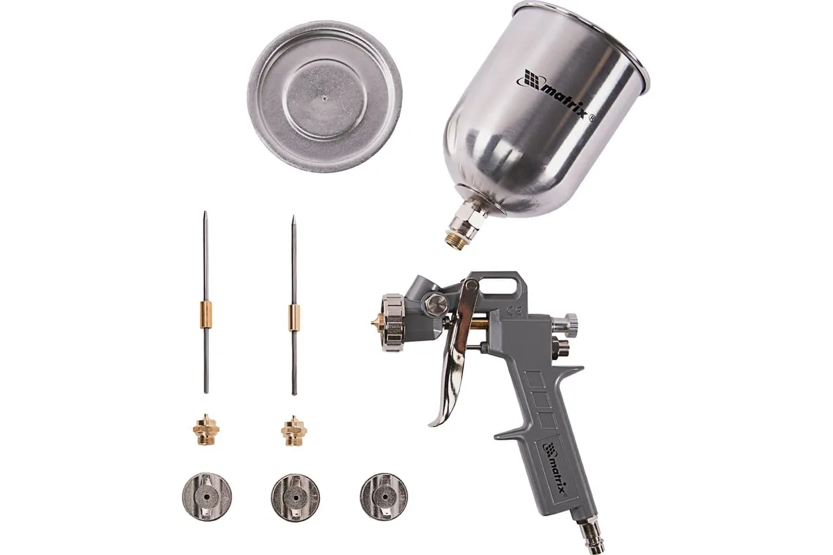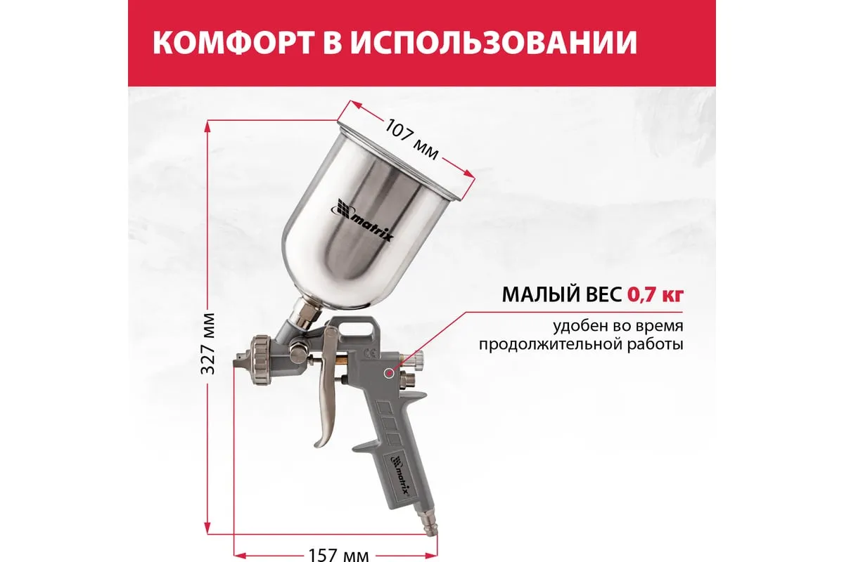 Пневматический краскораспылитель MATRIX 57314 позволяет наносить на поверхность защитные, декоративные и изоляционные покрытия. Он имеет верхнее расположение бачка и вмещает в себя до 0.6 литра краски. Конструкция краскопульта выполнена из металла, благодаря чему устойчива к механическим повреждениям в случае падения. В комплекте прилагаются сопла диаметром 1.2, 1.5 и 1.8 мм.