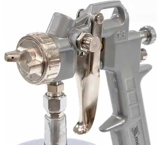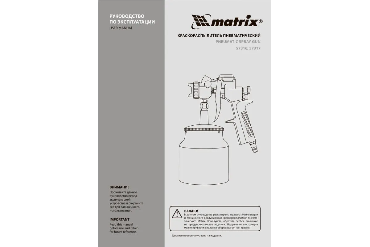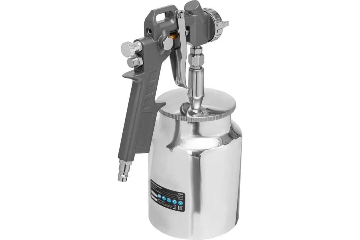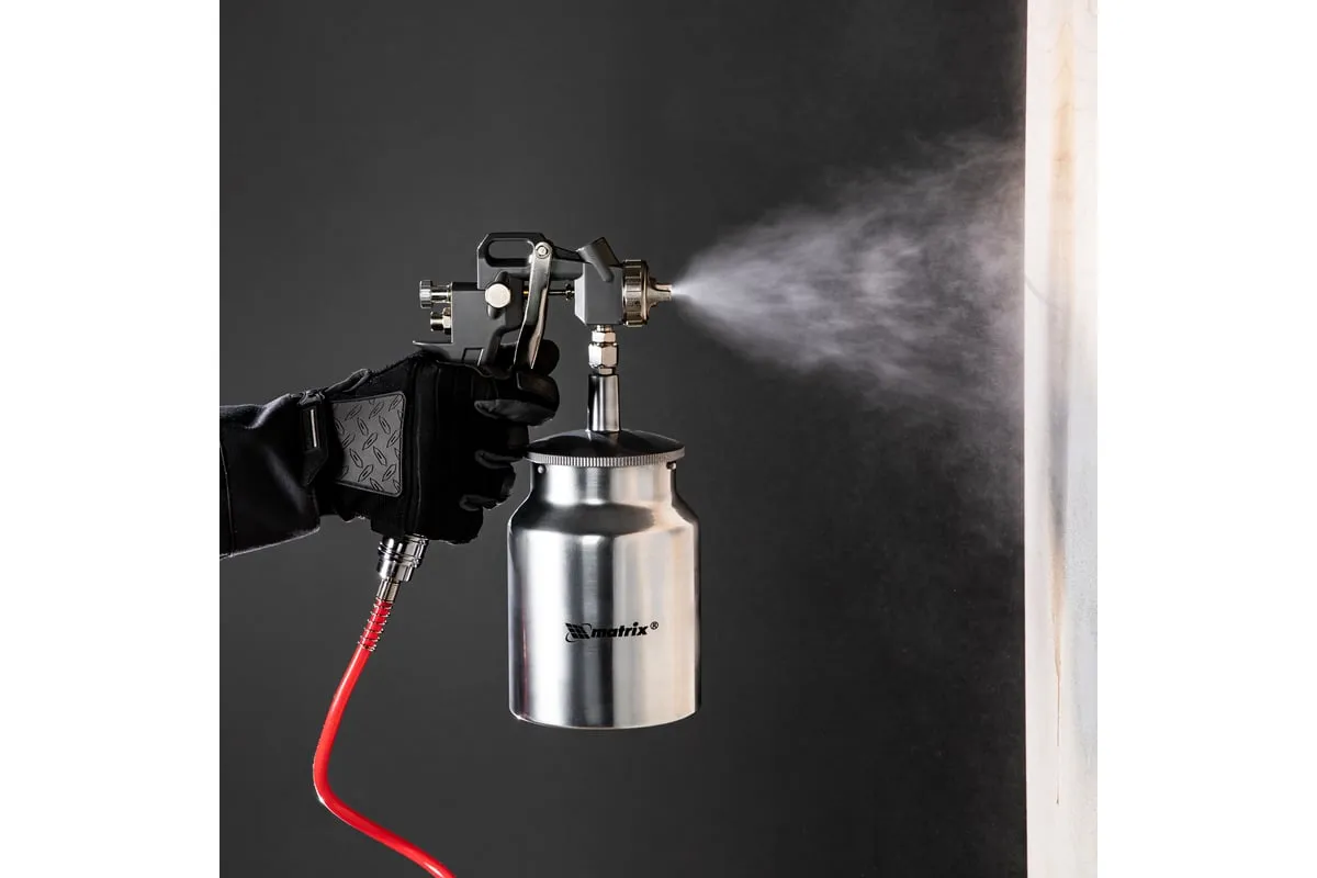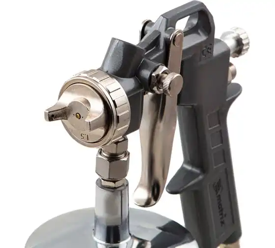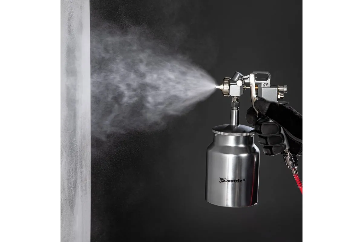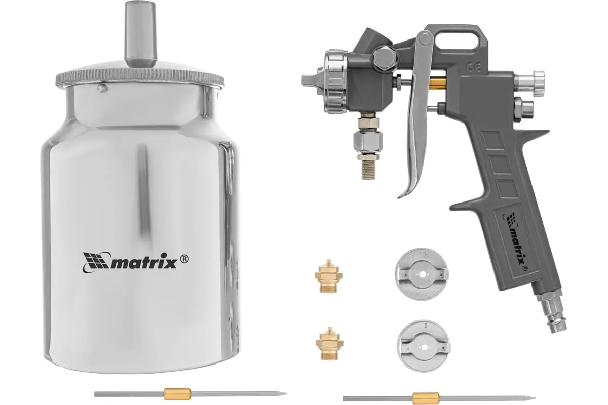 Пневматический краскораспылитель MATRIX 57316 используется при наружных и внутренних отделочных работах. С его помощью производится нанесение защитных, декоративных и изоляционных покрытий на различные поверхности. Пистолет имеет металлическую конструкцию, что обеспечивает надежность и устойчивость к механическим повреждениям. В комплект входят сопла диаметром 1.2, 1.5 и 1.8 мм.