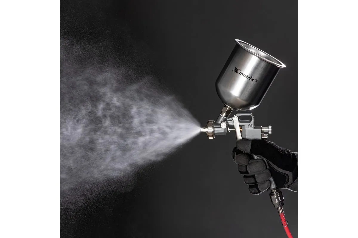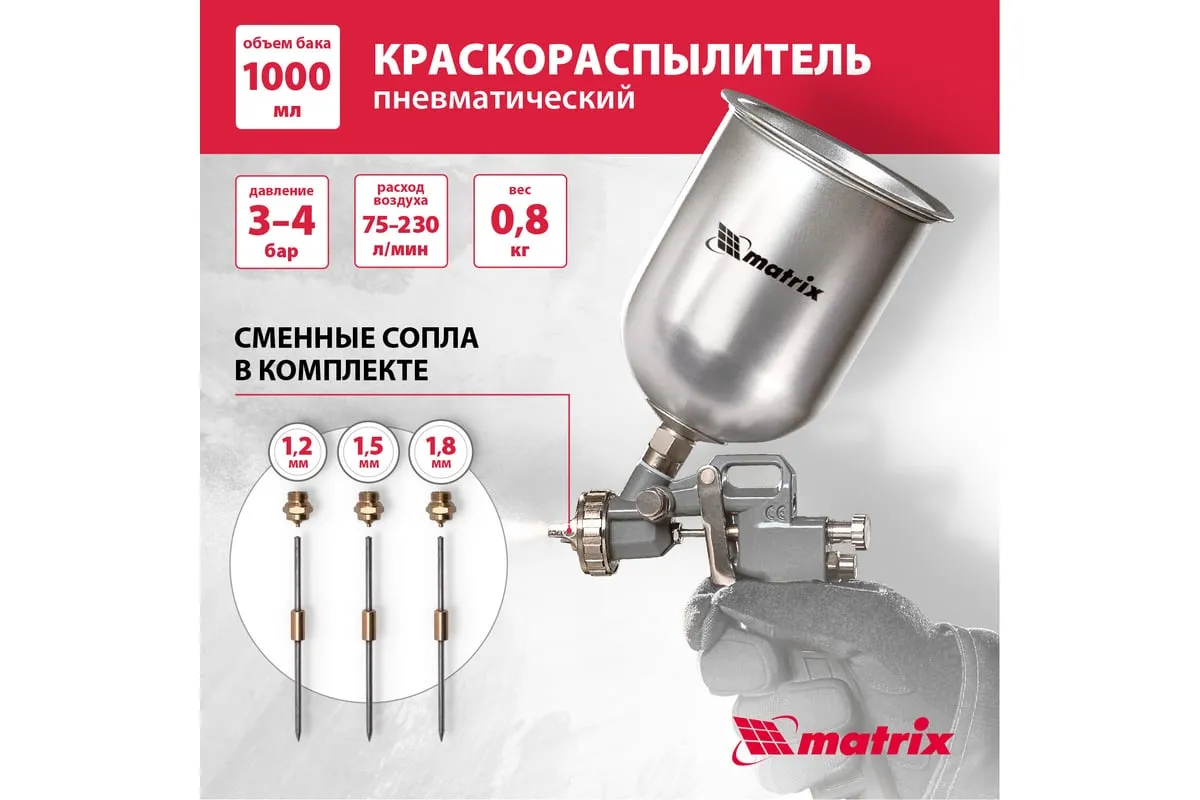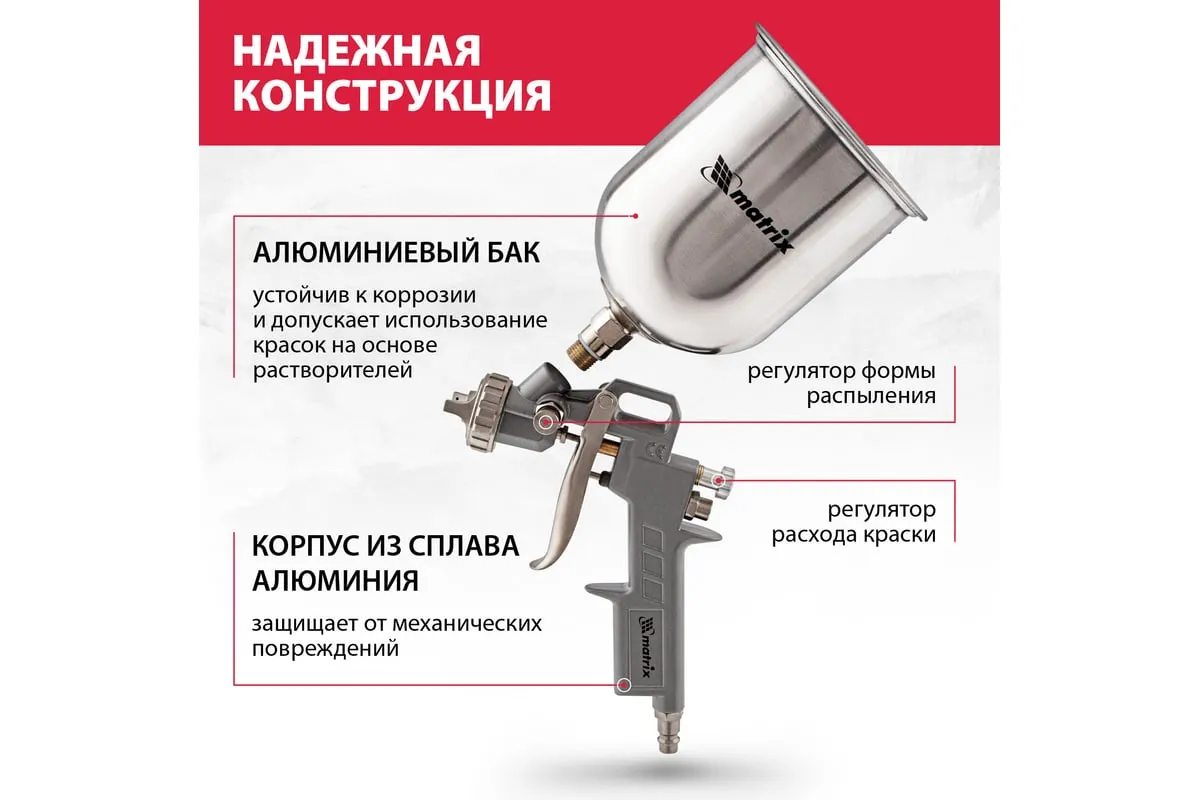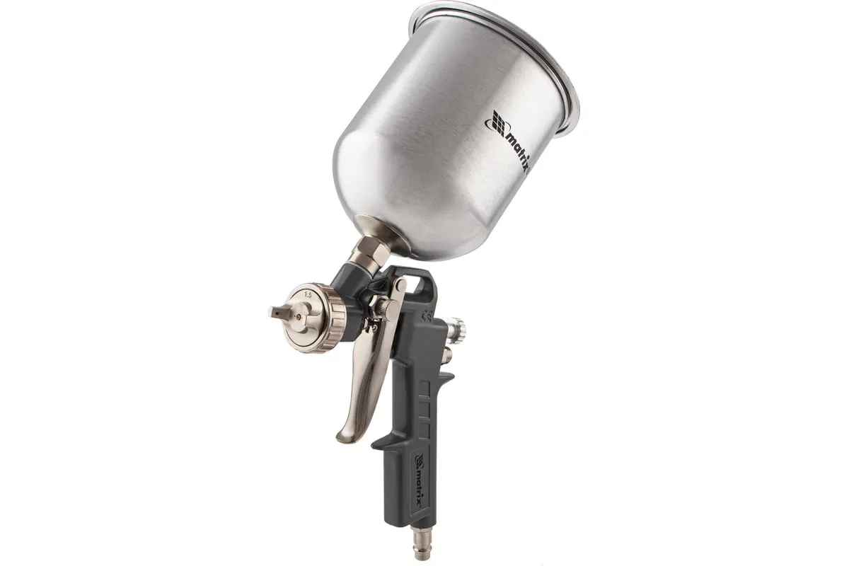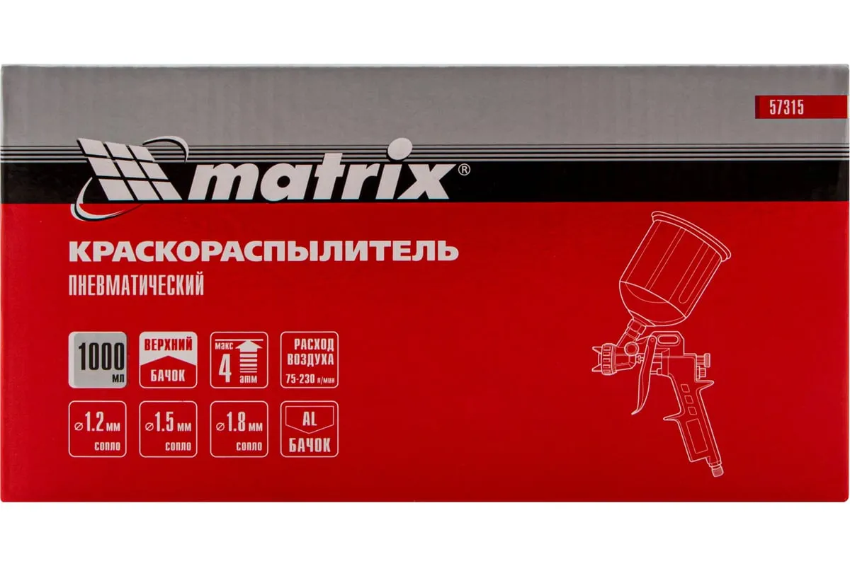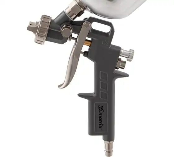 Пневматический краскораспылитель с верхним бачком MATRIX 57315 позволяет наносить на поверхность защитные, декоративные и изоляционные покрытия.