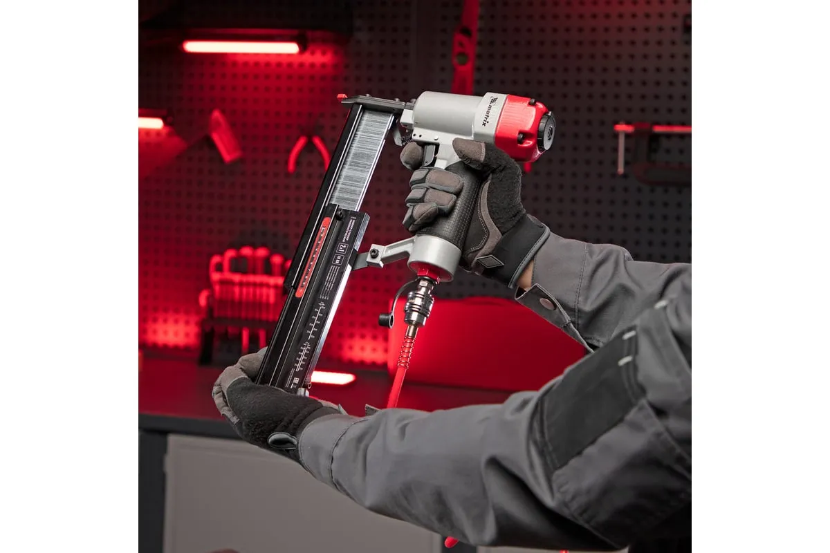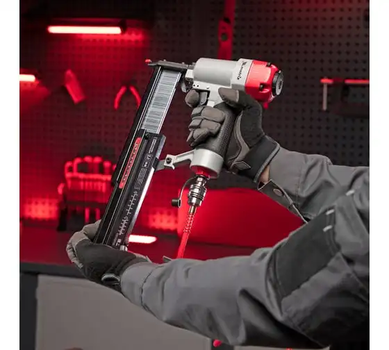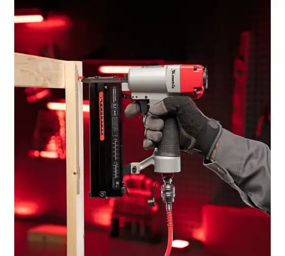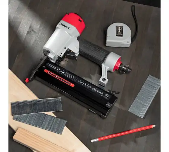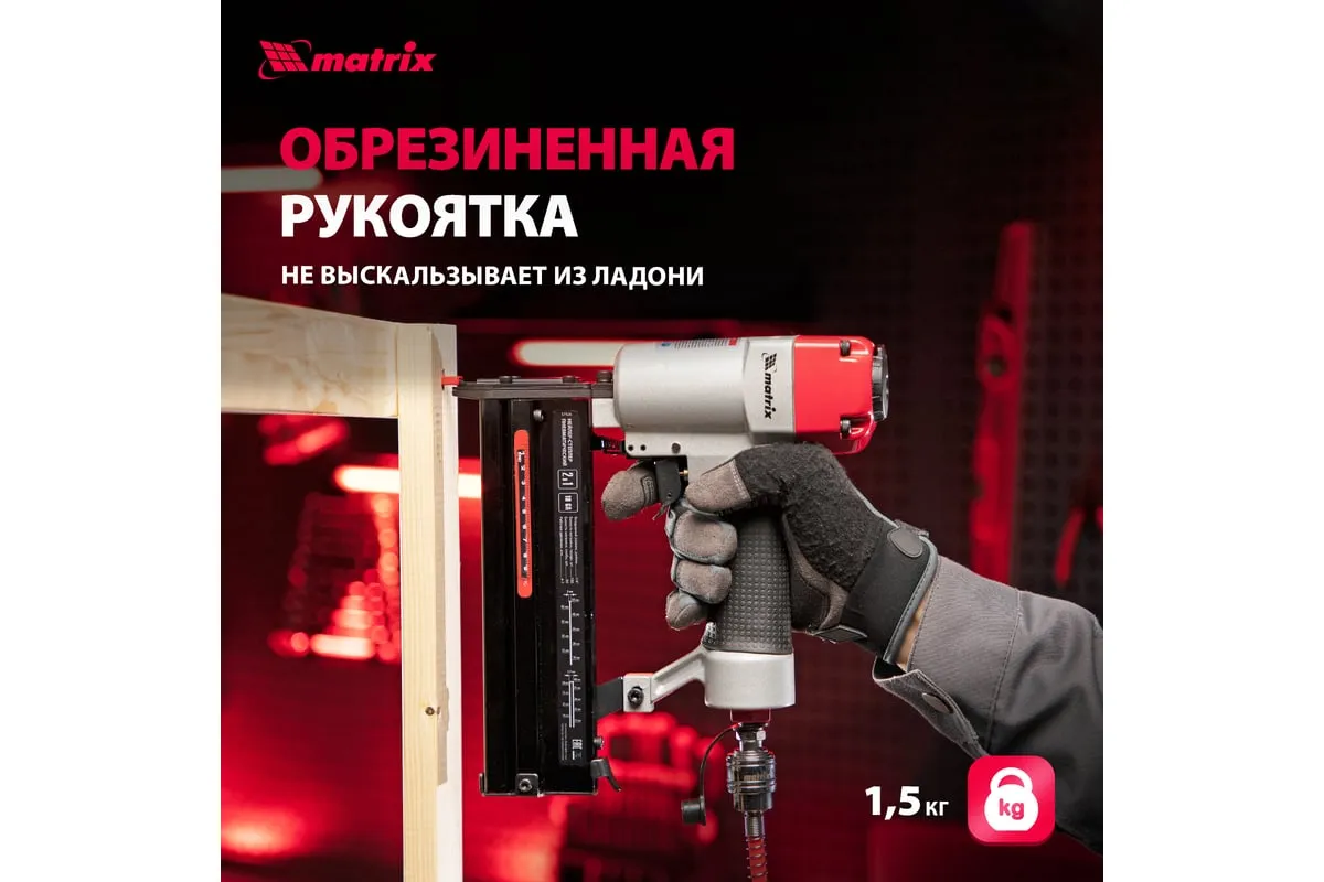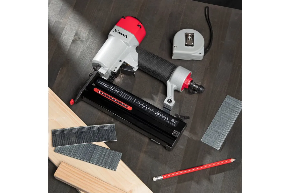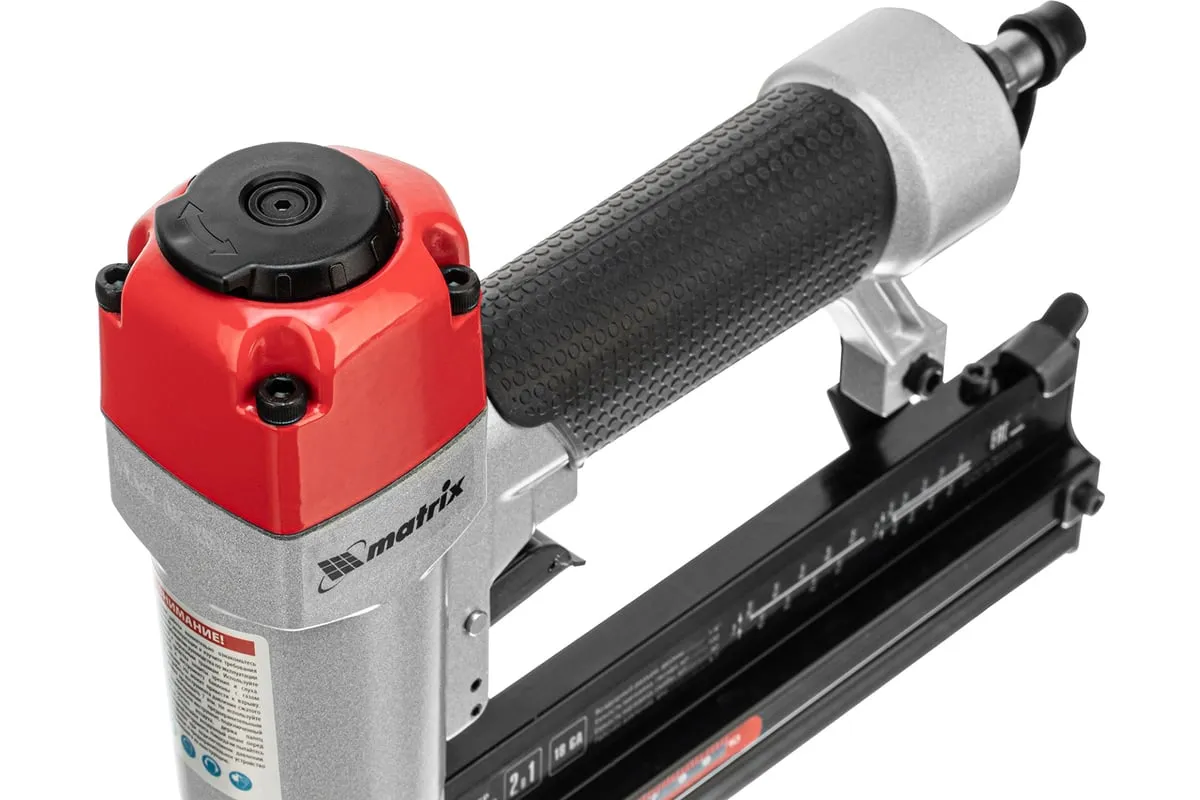 Пневматический нейлер-степлер 2 в 1 Matrix 57426 работает с двумя типами крепежей 18GA: гвоздями длиной 10-50 мм и скобами длиной 25-40 мм. Пригодится при сборке мебели и деревянных каркасов, для обшивки и утепления дома, при установке окон, дверей, плинтусов, напольных покрытий и для производства упаковки. Низкий расход воздуха 0,7 л/мин позволяет использовать инструмент с любыми типами компрессоров.