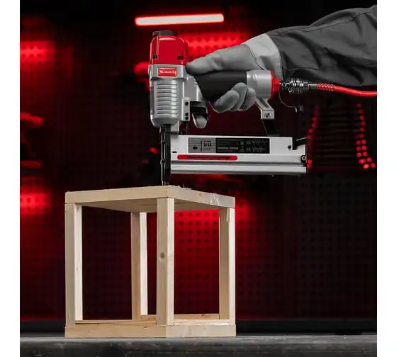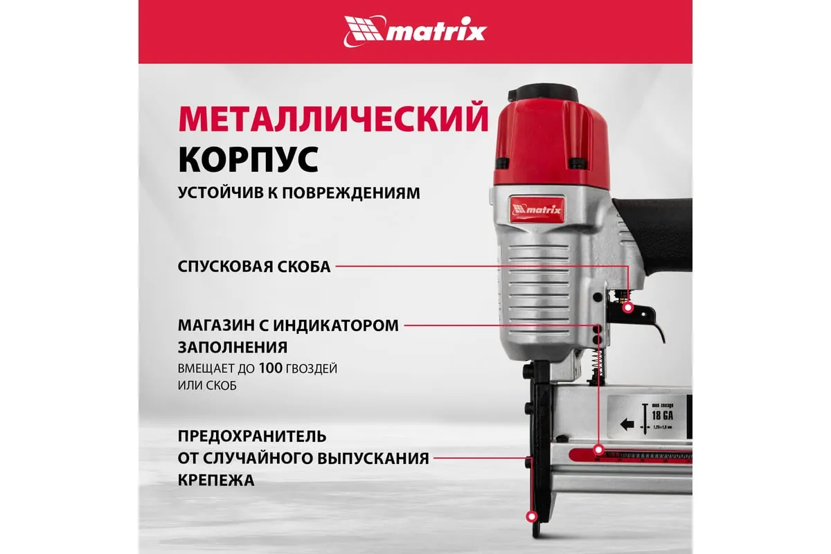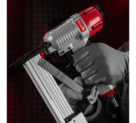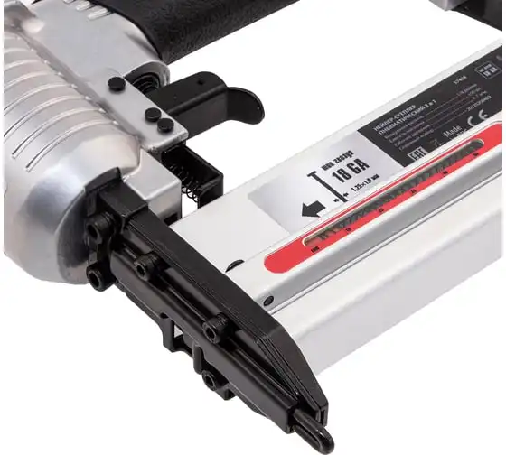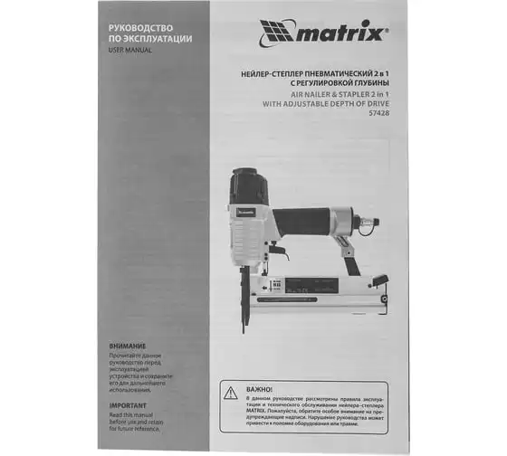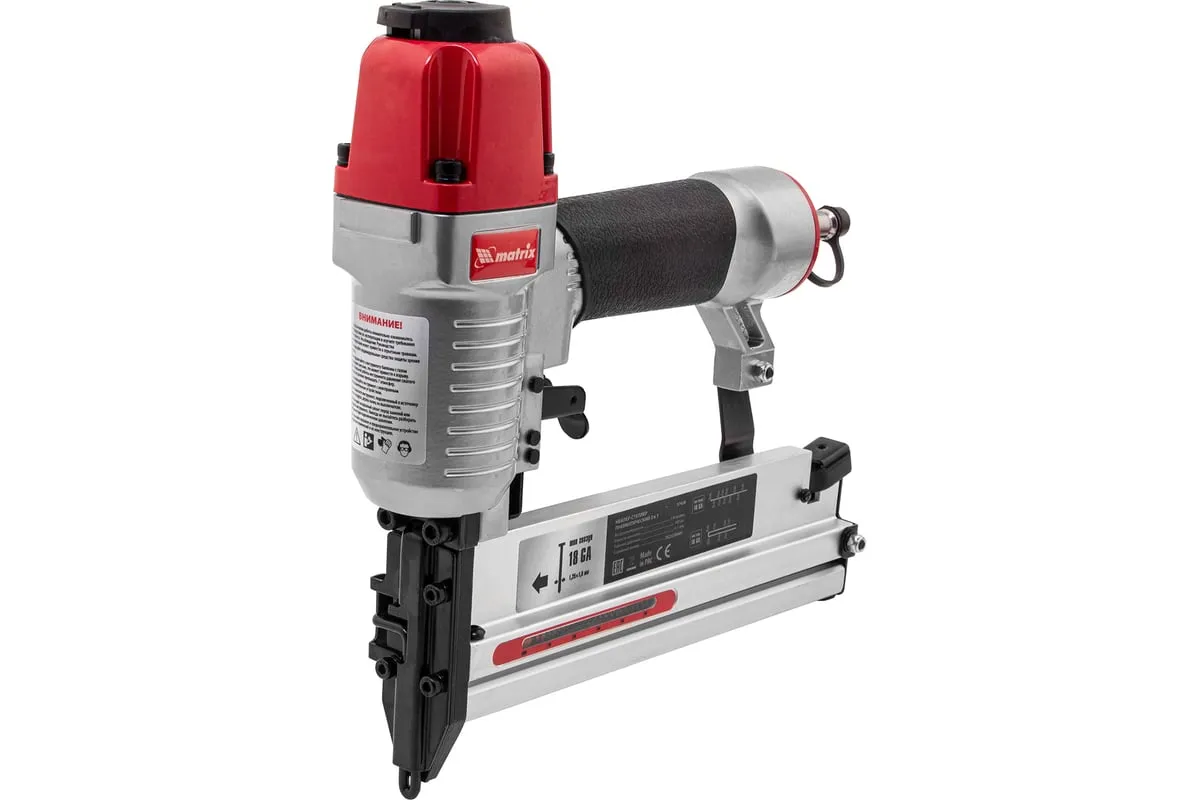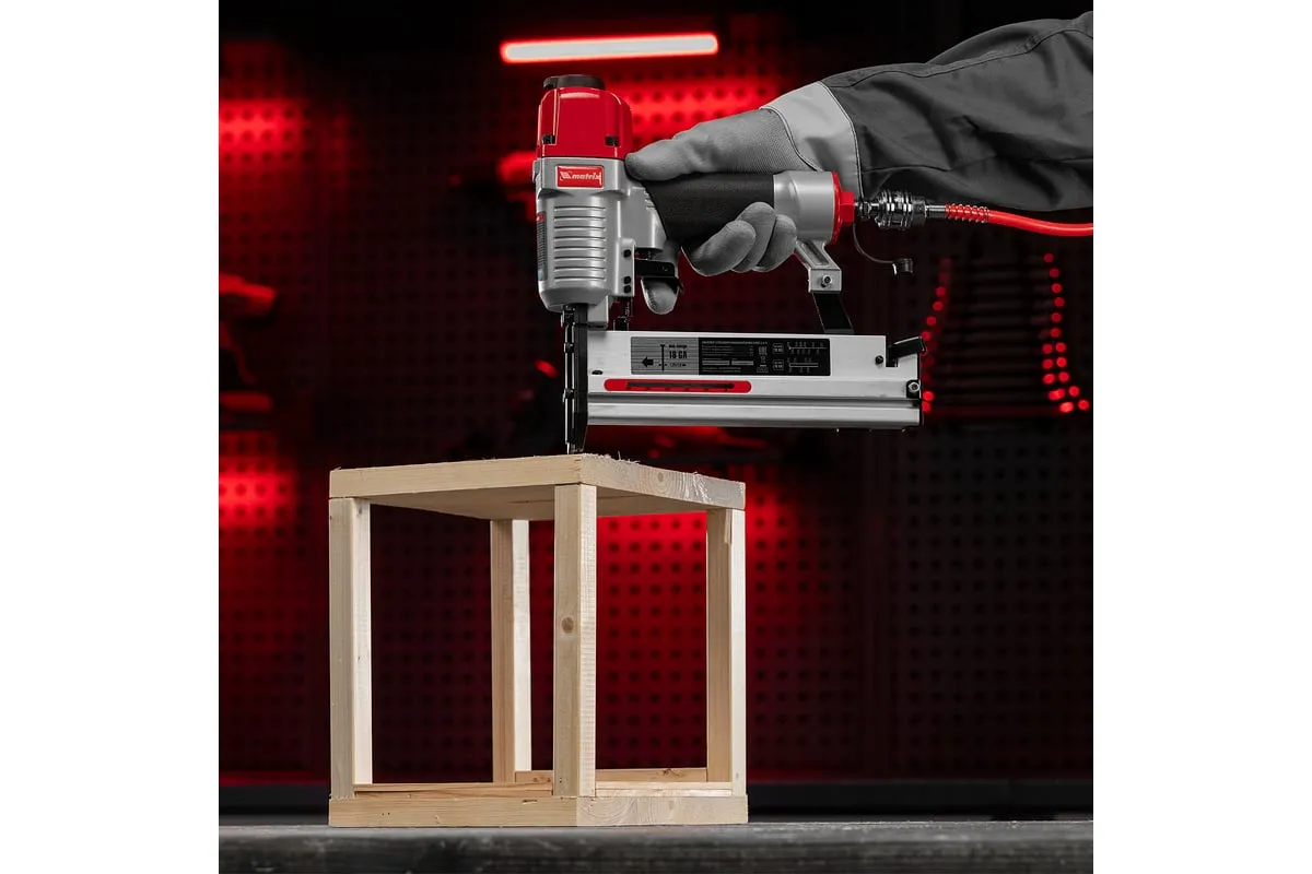 Пневматический нейлер-степлер с регулировкой глубины MATRIX 2 в 1 57428 используется для крепления материалов.