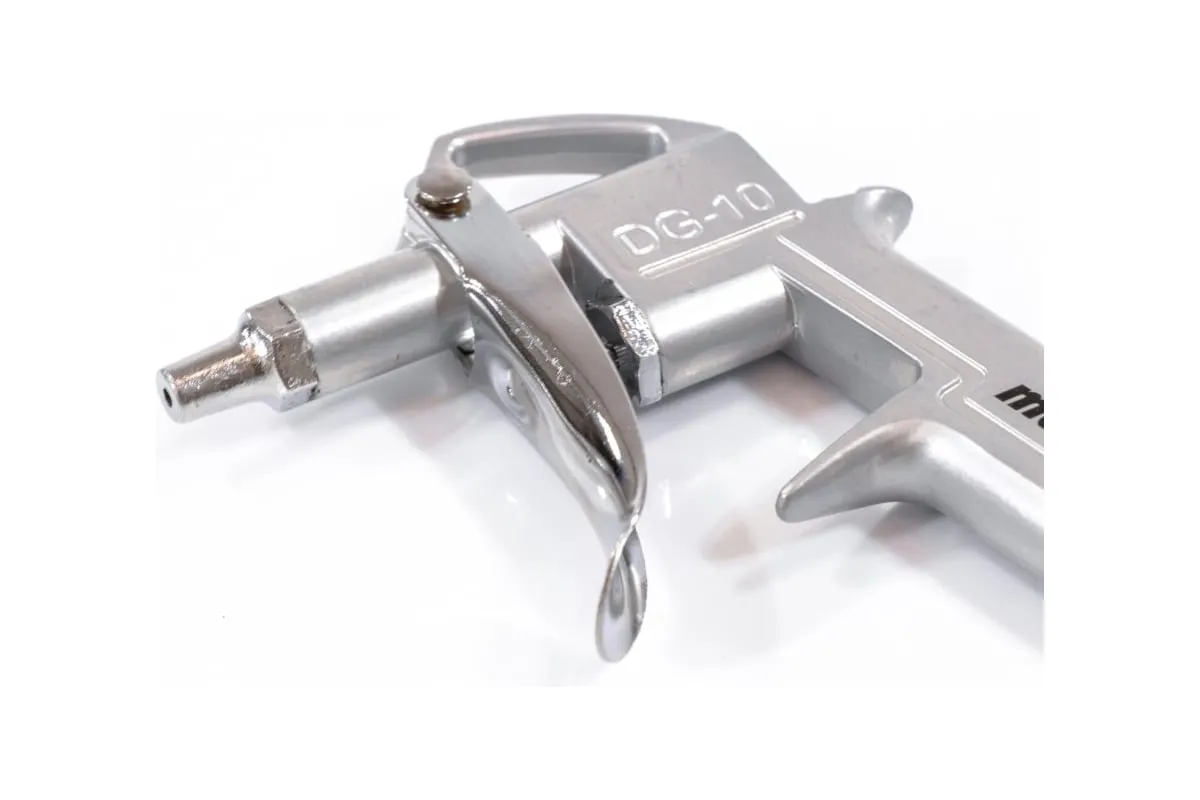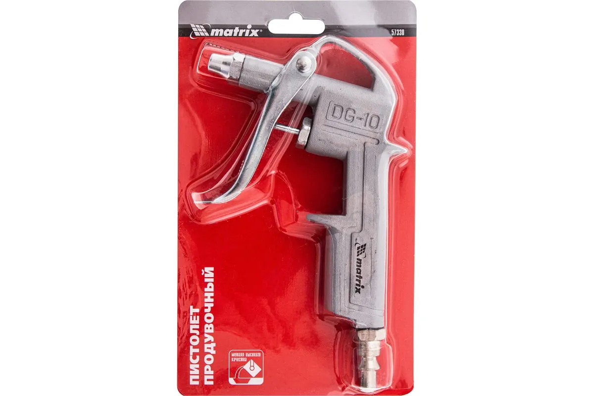 Пистолет продувочный Matrix 57330 предназначен для очищения шлангов, труб, пазов, отверстий, полостей изделий и различных поверхностей под давлением до 8 бар. Мощная воздушная струя быстро удаляет пыль, стружку, грязь и мелкий мусор, помогает подготовить поверхности под покраску. Пистолет работает со сжатым воздухом, поэтому им можно пользоваться во влажных помещениях без риска пожара и взрыва. Максимальный расход воздуха составляет 300 л/мин.