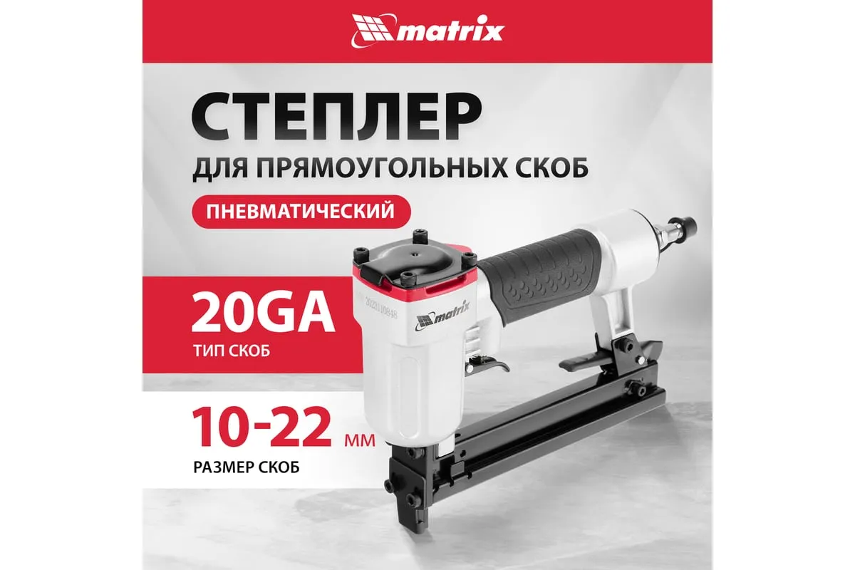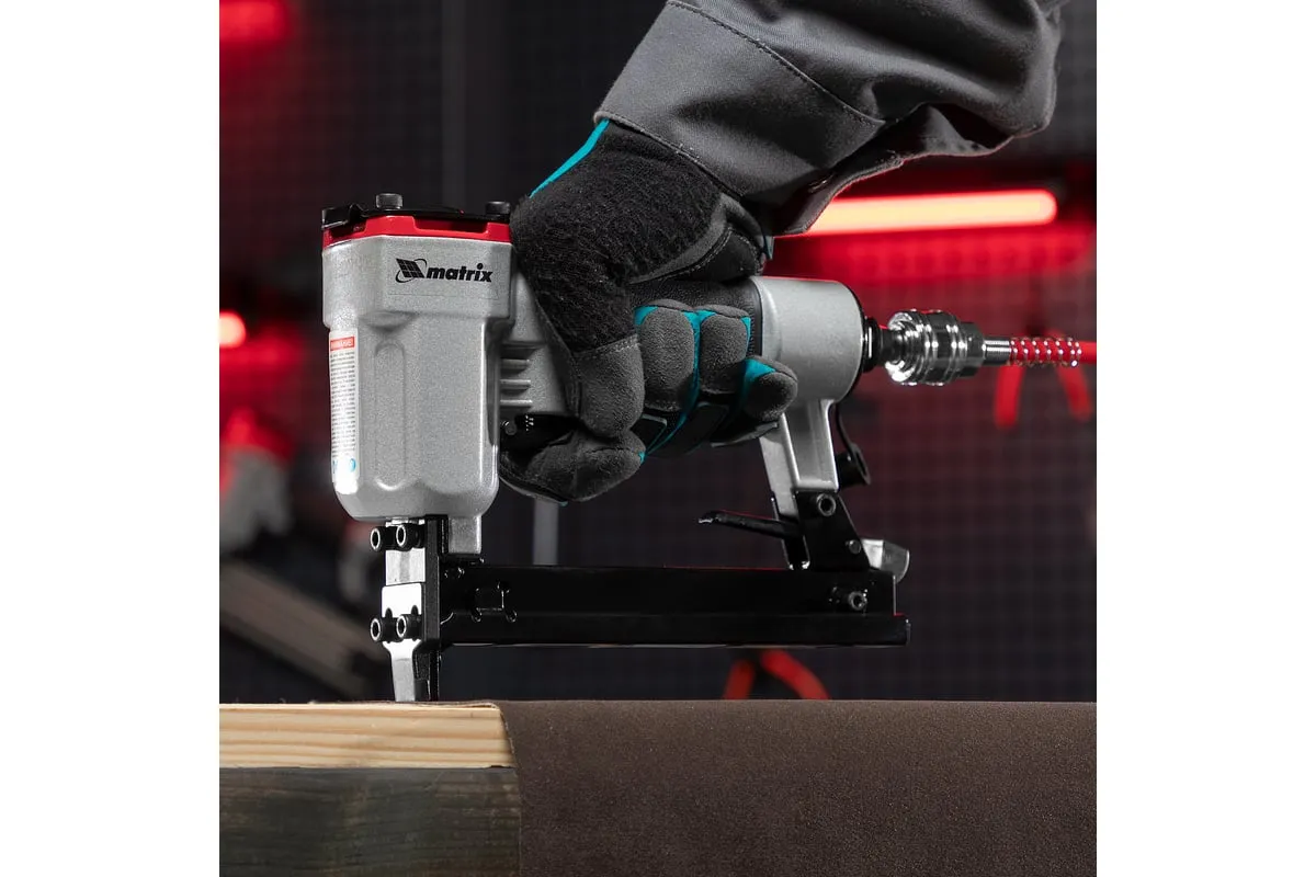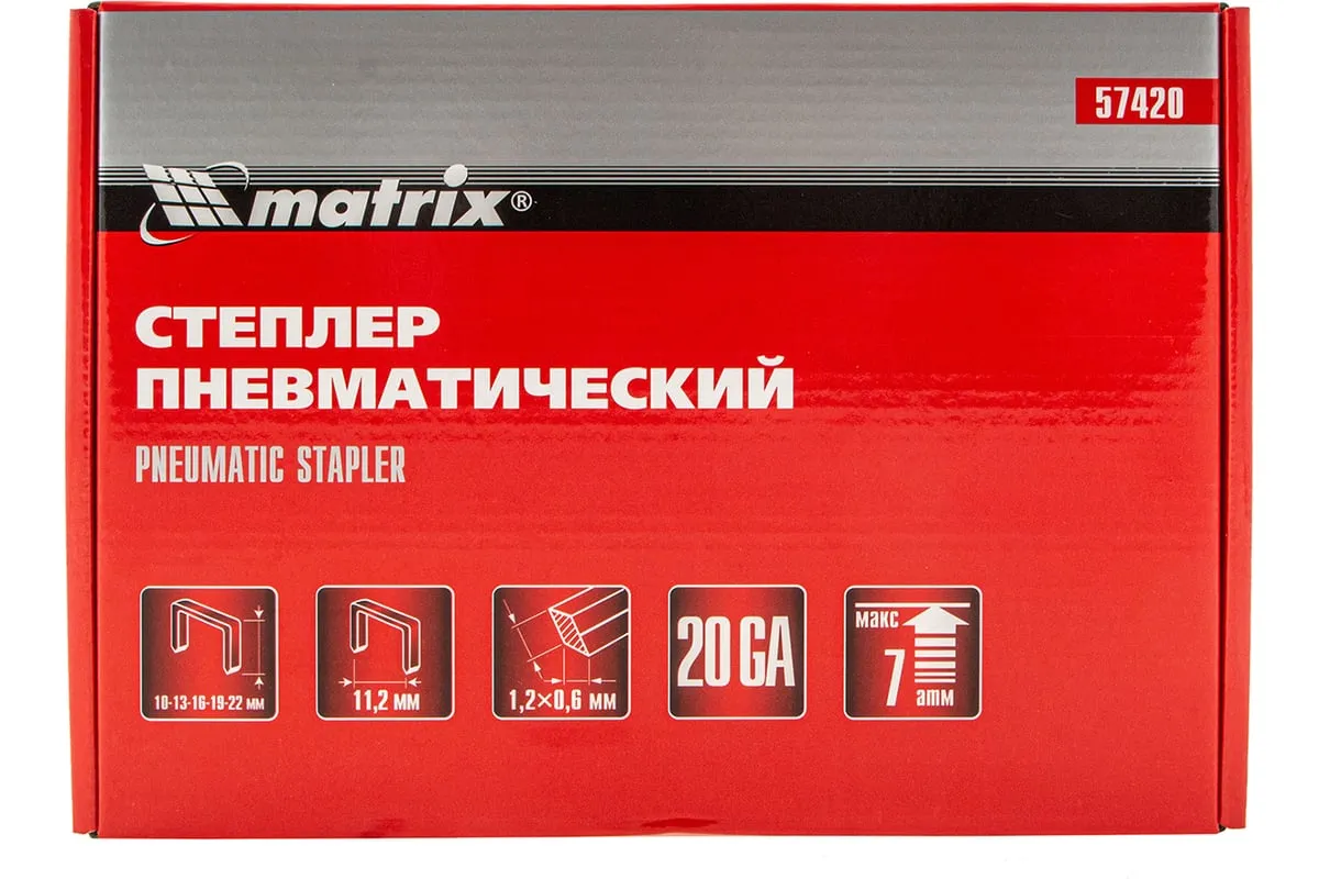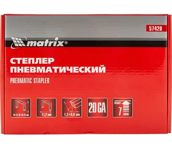 Пневматический степлер MATRIX 57420 используется в производственной сфере деятельности, так как обладает высоким уровнем эффективности в работе. Степлер способен быстро и легко забивать скобы в деревянные поверхности, крепя к ним различные материалы, такие как: гипсокартон, фанеру, ДВП, а также кожу, ткань и пр. Степлер имеет магазин на 160 скоб размерами 10 - 22 мм.