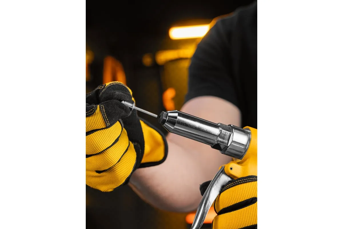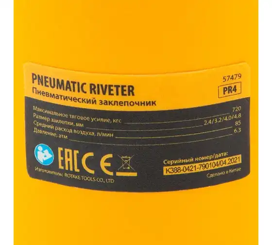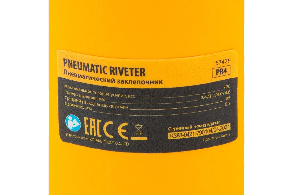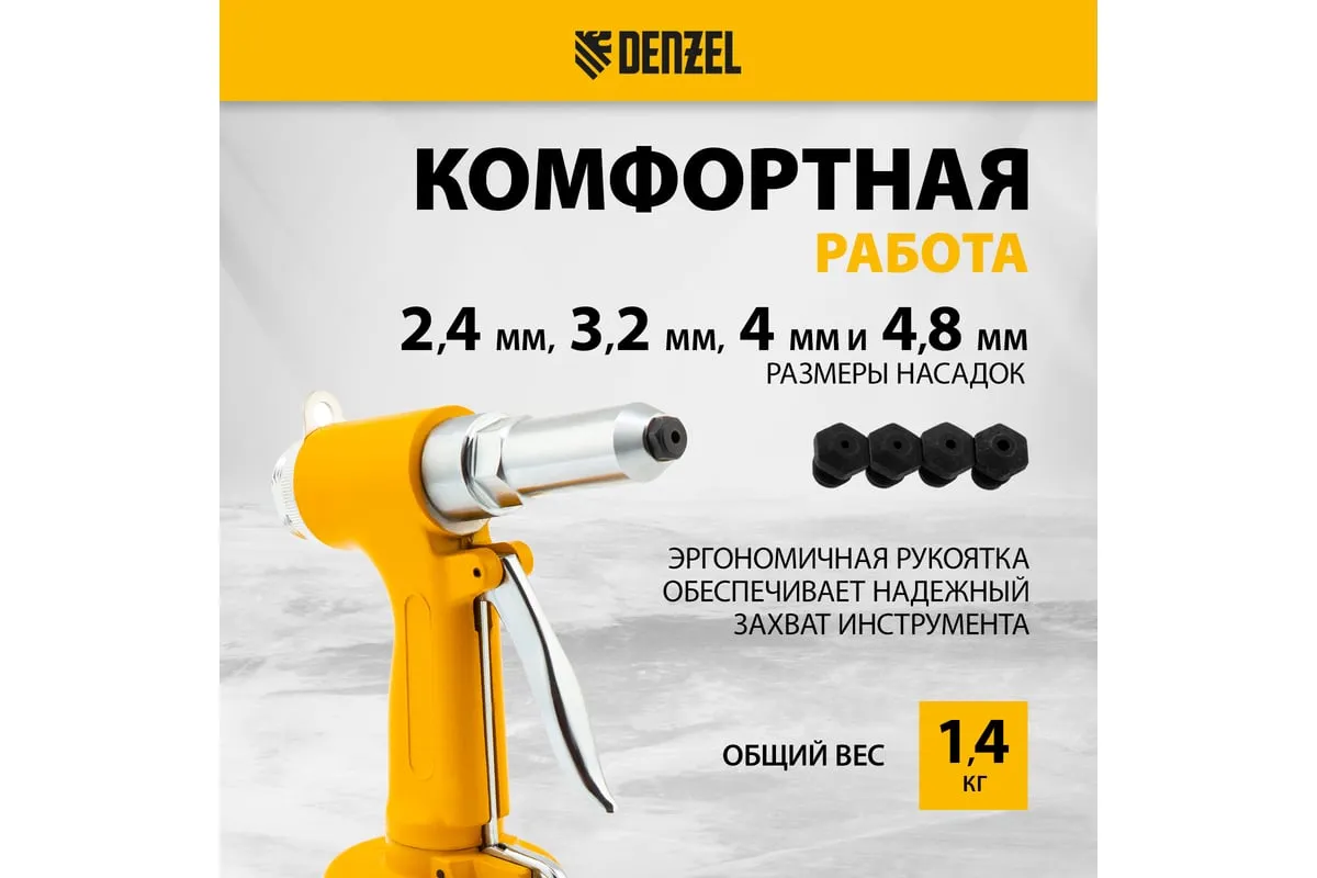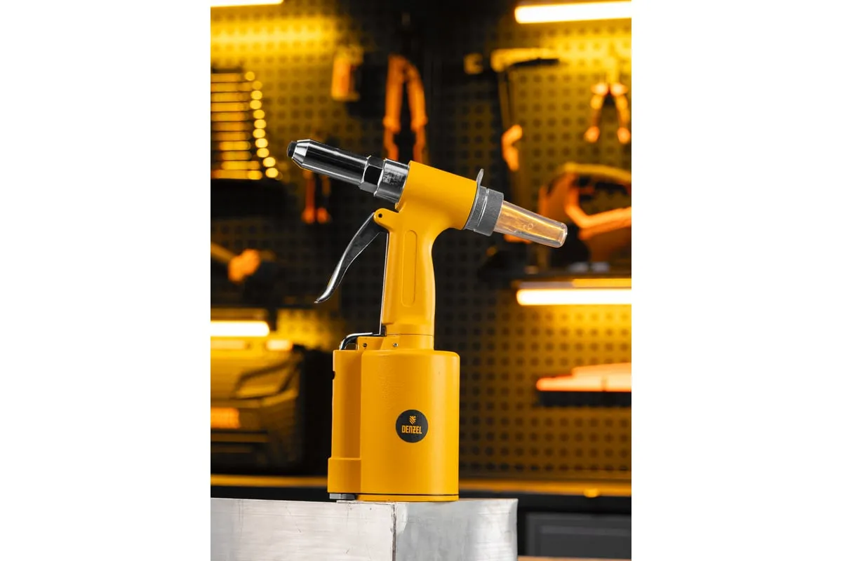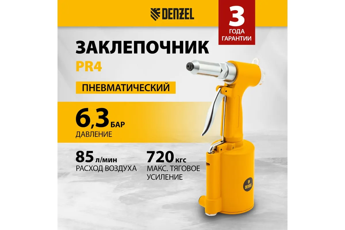 Пневматический заклепочник Denzel PR4, 2.4-4.8 мм 57479 значительно упрощает работу в автосервисах, домашних мастерских, на малых предприятиях и на ремонтных площадках.