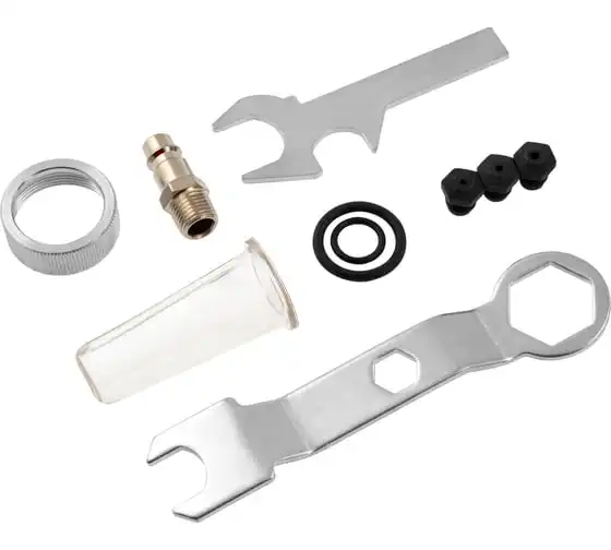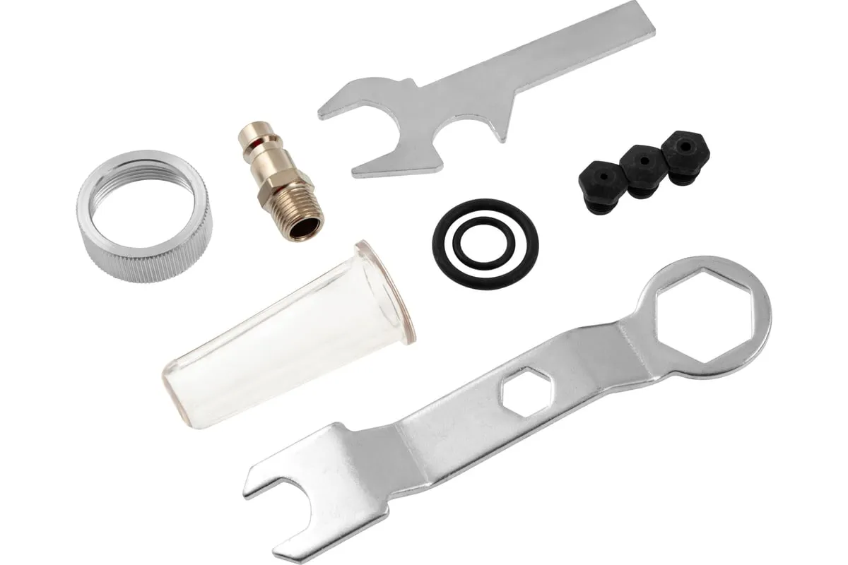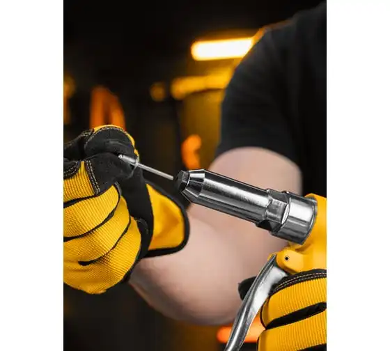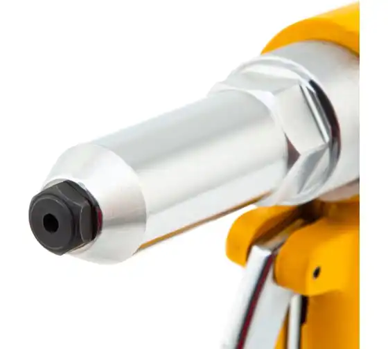 В качестве оснастки используются заклепки размером 2,4-4,8 мм. В комплект поставки входит 4 насадки под заклепки размерами 2,4 мм, 3,2 мм, 4 мм и 4,8 мм.