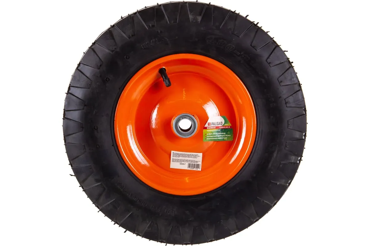 Пневматическое колесо 4.80/4.00-8 Palisad 68957 диаметром 390 мм, с длиной оси 80 мм и внутренним диаметром подшипника 20 мм, предназначено для перевозки грузов с помощью тачки. Подходит к тачке Сибртех 68936. Колесо с шариковыми подшипниками обеспечивает высокую проходимость и рассчитано на ежедневное использование на ровном или рыхлом грунте.