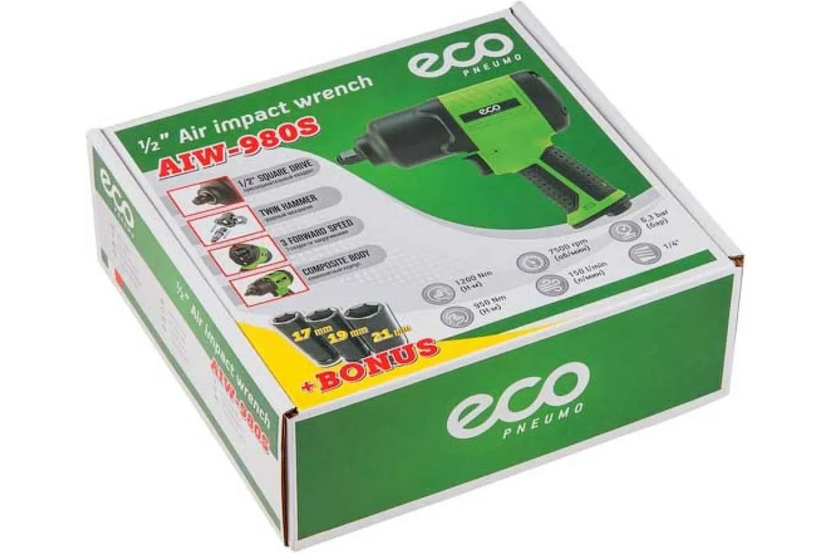 Пневмогайковерт ECO AIW-980S имеет эргономичный дизайн.