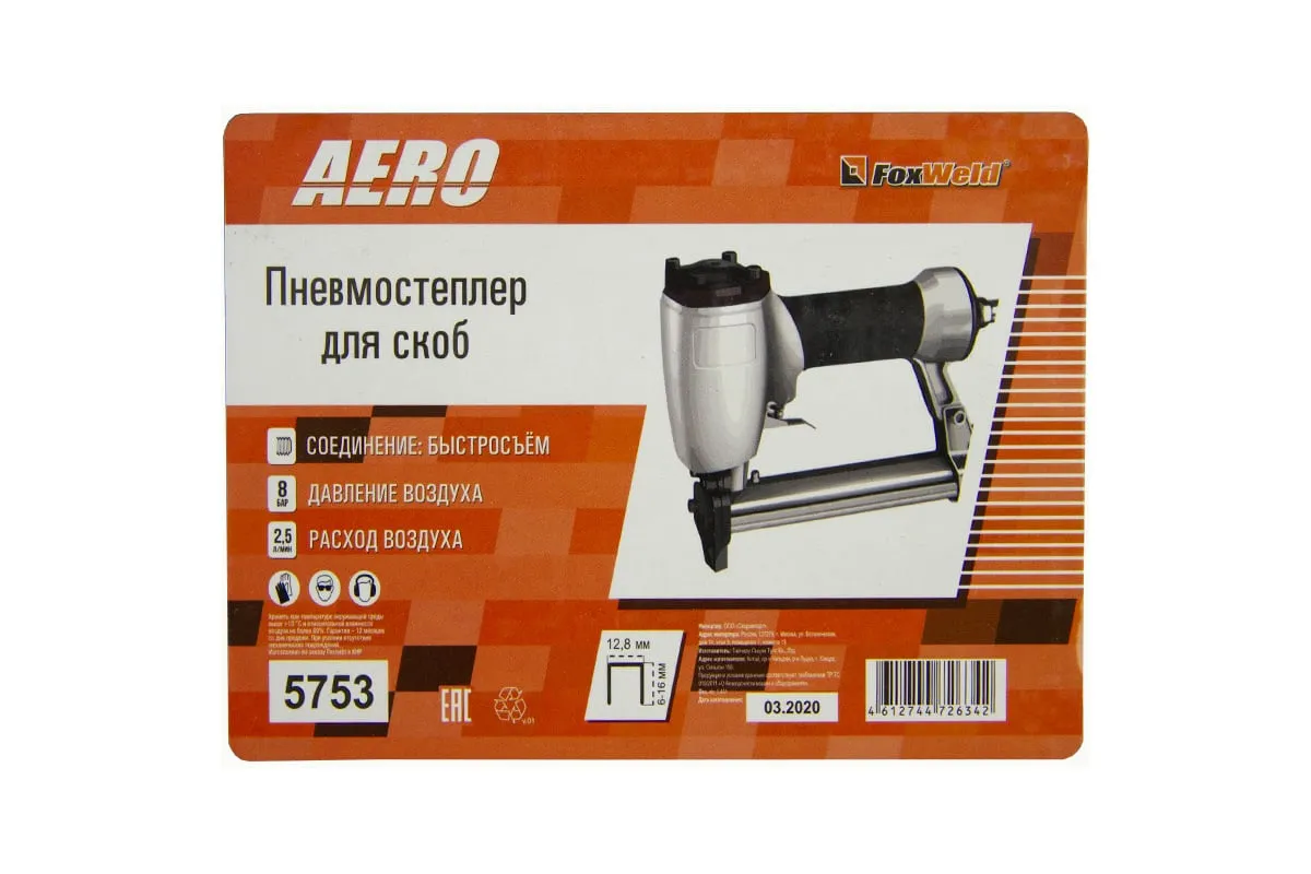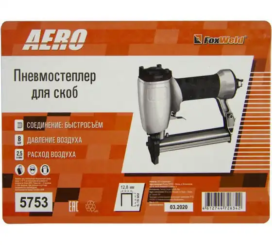 Пневмостеплер для скоб Foxweld AERO 5753 применяется для крепления металлическими скобами деревянных реек, фольги, ткани любого типа, бумаги, картона, проволочной сетки к деревянным, фанерным и другим подобным конструкциям. Для работы степлера необходим воздушный компрессор и воздушная магистраль с быстросъёмным соединением Рапид F "мама".