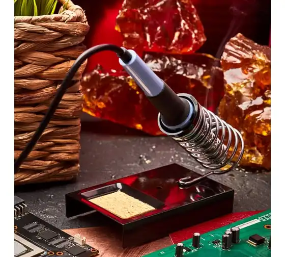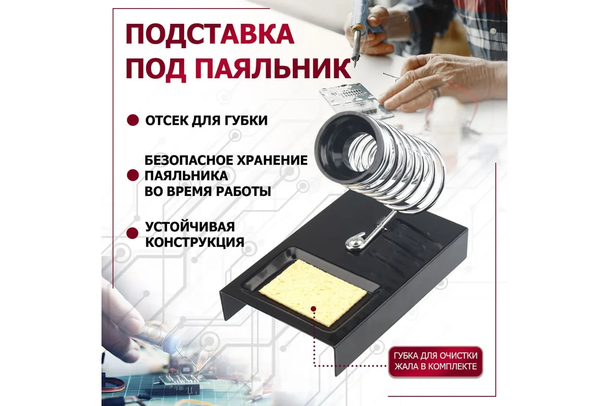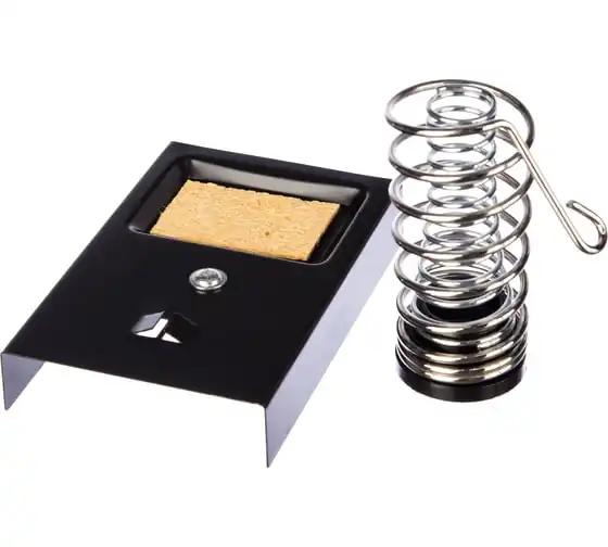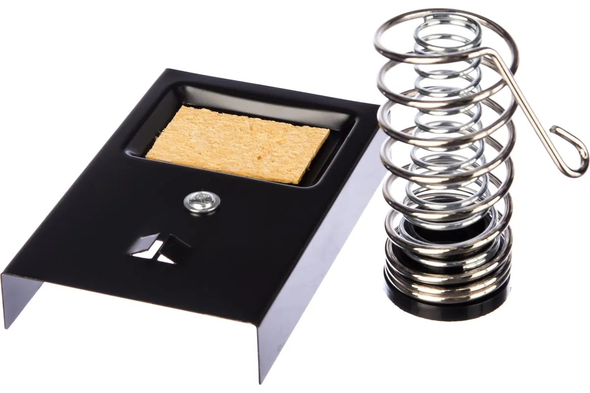 Подставка FD 7049 (ZD-10A) под паяльник предназначена для безопасного хранения паяльника при нагревании, в промежутках между использованием и охлаждении. Выполнена из витой хромированной конусообразной пружины и металлической платформы с ложементом под губку для очистки жала паяльника от остатков припоя. Губка для очистки жала паяльника в комплекте. Паяльник легко и удобно помещается в направляющую. Для безопасного хранения и бережной транспортировки предусмотрена картонная коробка.