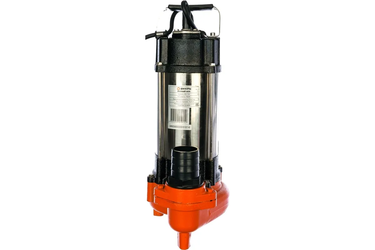 Фекальный насос Вихрь ФН-750 относится к категории бытовых насосов и предназначен для откачивания стоков с загрязнениями в виде биологических, химических и физических включений. Диаметр частиц в перекачиваемой среде может доходить до 42 мм. Может использоваться для откачки воды из дождевых колодцев, а также для водозабора из различных водоёмов с целью орошения. Агрегат рассчитан на 20 включений в час. Температура воды должна быть не ниже +1°С и не выше +35°С. Конструкция фекального насоса вертикальная, с нижним типом водозабора. Агрегат устойчивый, хорошо держится на дне колодцев, а благодаря большому весу не всплывает в выгребных ямах.
