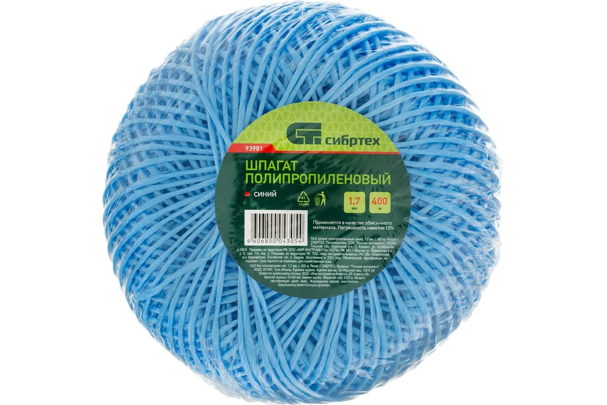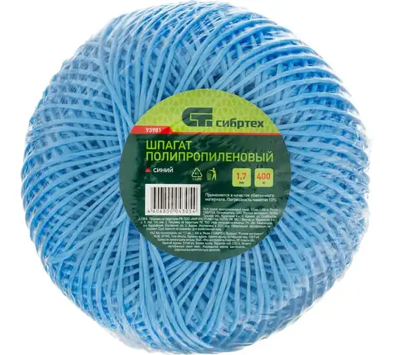 Синий полипропиленовый шпагат Сибртех 93981 диаметром 1,7 мм и длиной 400 м используется для упаковки грузов, связывания предметов, подвязки растений и решения других задач. Шпагат имеет многониточную свивку и выдерживает разрывную нагрузку 50 кгс, поэтому очень надежен. Длины 400 м достаточно для выполнения работ большого объема. Бобину можно разматывать как с внутренней, так и с наружной стороны. Шпагат будет полезен в сельском хозяйстве, на складе, производстве, а также дома или на даче.