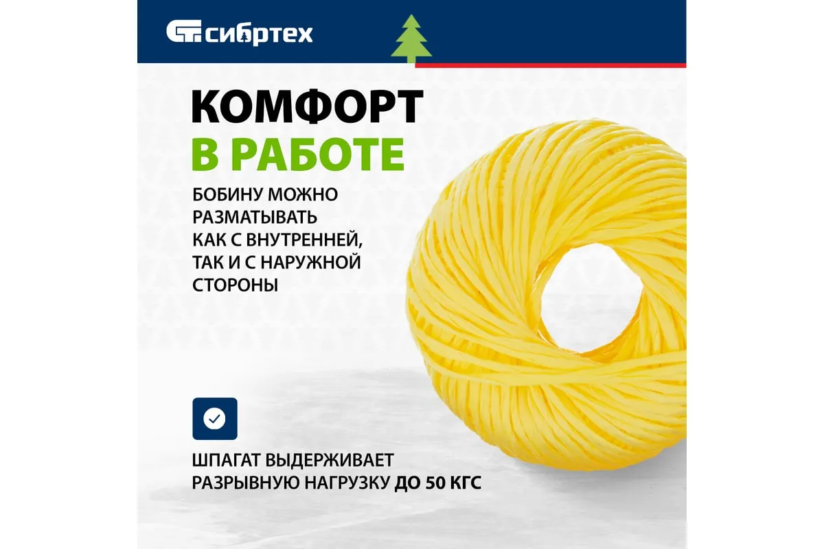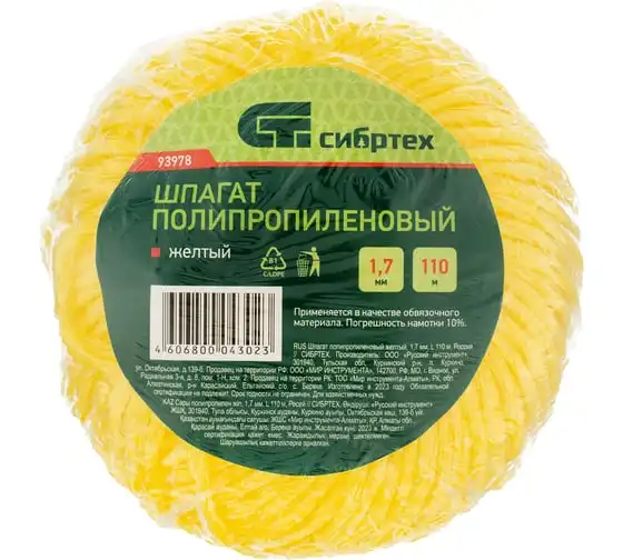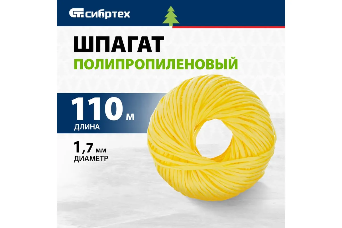 Желтый полипропиленовый шпагат Сибртех 93978 диаметром 1,7 мм и длиной 110 м используется для упаковки грузов, связывания предметов, подвязки растений и решения других задач. Шпагат имеет многониточную свивку и выдерживает разрывную нагрузку 50 кгс, поэтому очень надежен. Длины 110 м достаточно для выполнения работ большого объема. Бобину можно разматывать как с внутренней, так и с наружной стороны. Шпагат будет полезен в сельском хозяйстве, на складе, производстве, а также дома или на даче.