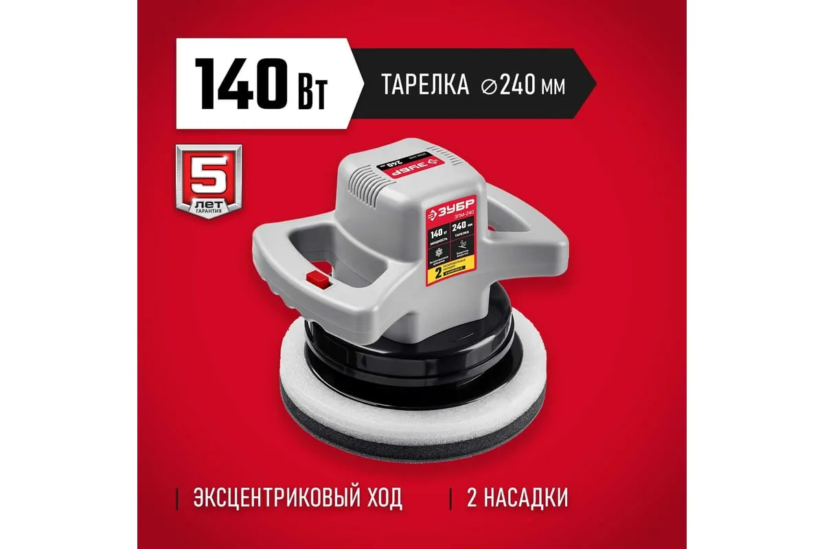 Полировальная машина ЗУБР ЗПМ-240 предназначена для полировки различных поверхностей. Полировальный круг имеет достаточно большой диаметр - 240 мм, что значительно снижает давление на обрабатываемую поверхность. Особый тип эксцентрикового механизма имитирует полирование вручную, а также улучшает качество и и уменьшает время работы. Специальный водоотталкивающий верхний слой не позволяет полироли впитываться в полировальную тарелку. Это повышает качество полировки и уменьшает расход полироли.