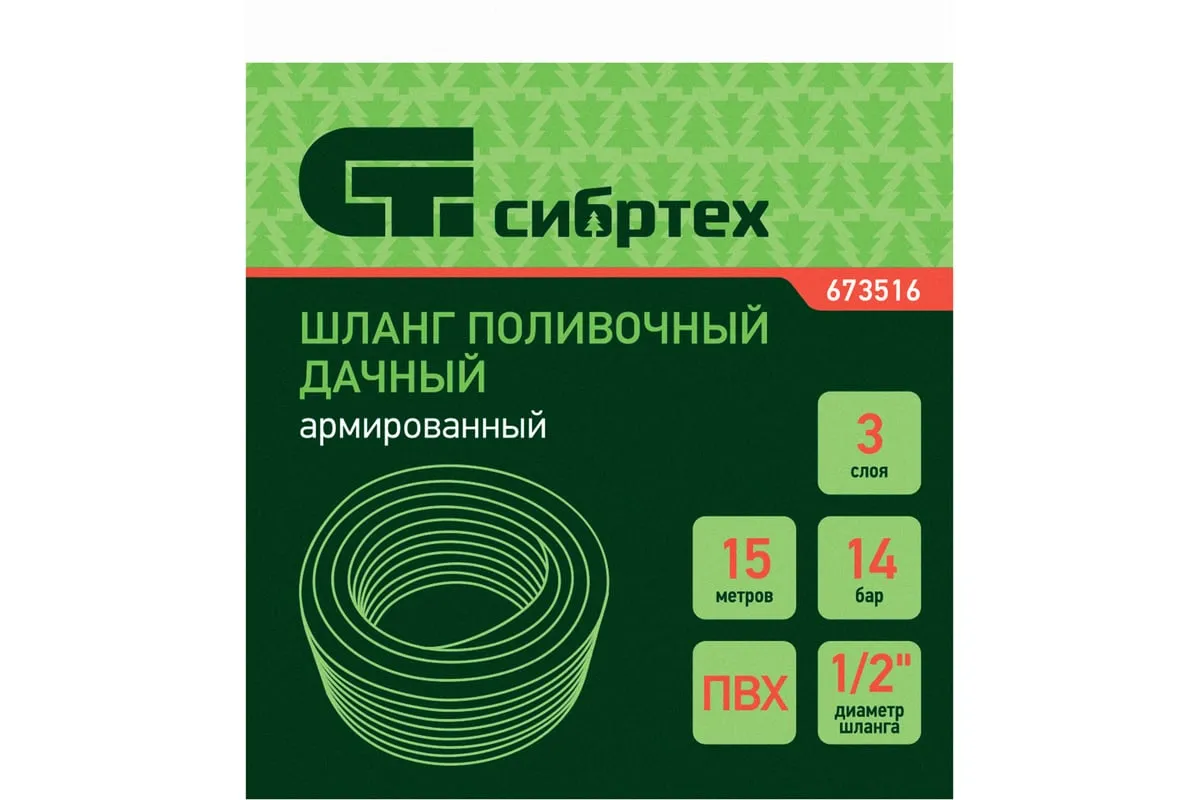 Армированный поливочный шланг из ПВХ Сибртех «Дачник» 673516 длиной 15 м и диаметром 1/2" используется садоводами для орошения участка. Подходит для ежедневного применения, оптимален для участков небольшой площади. Совместим с любыми системами полива Palisad. Использование шланга позволяет сэкономить время пользователя и повышает комфорт работы в саду.