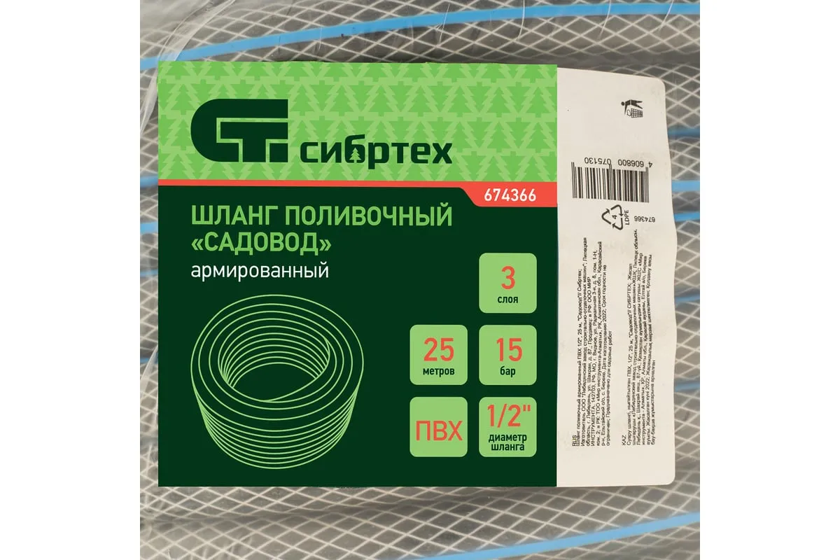 Шланг поливочный армированный из ПВХ Сибртех «Садовод» 674366 длиной 25 м и диаметром 1/2" используется для быстрого орошения растений и будет полезен на дачном участке. Оптимален для ухода за участком средней площади, совместим с элементами любых оросительных систем Palisad и Palisad LUXE.