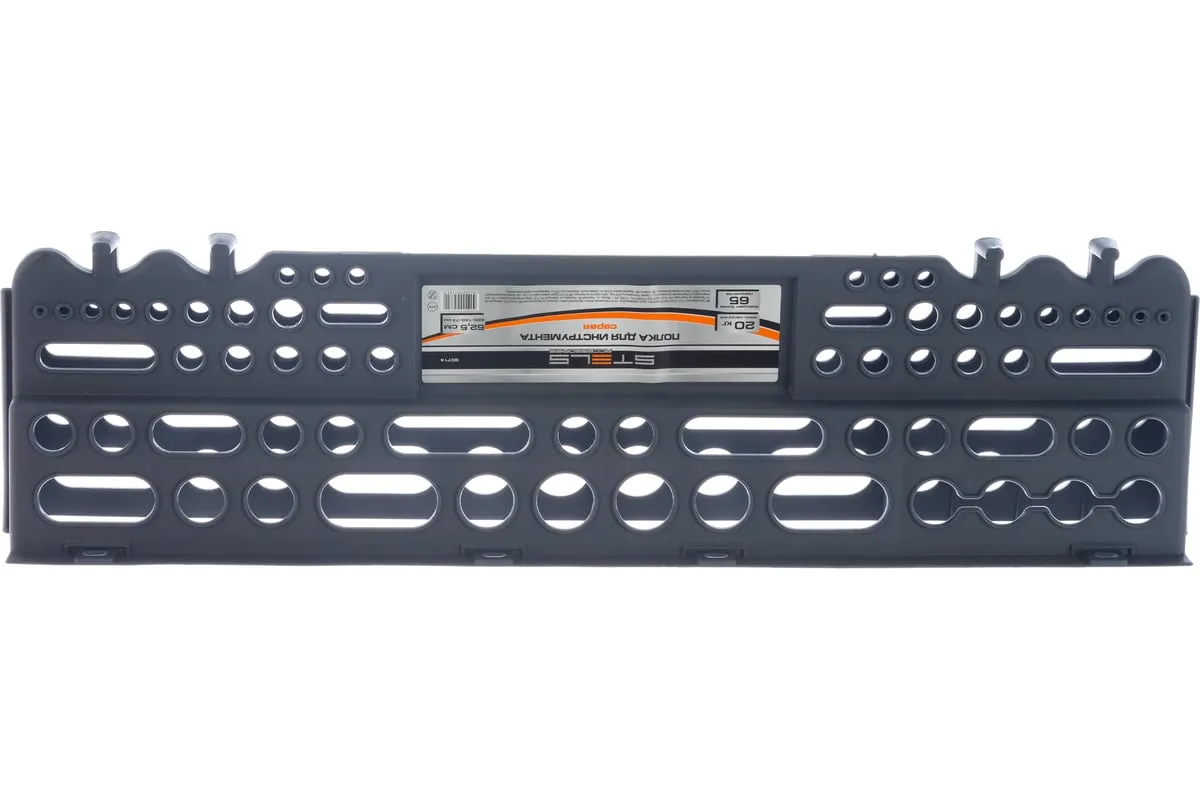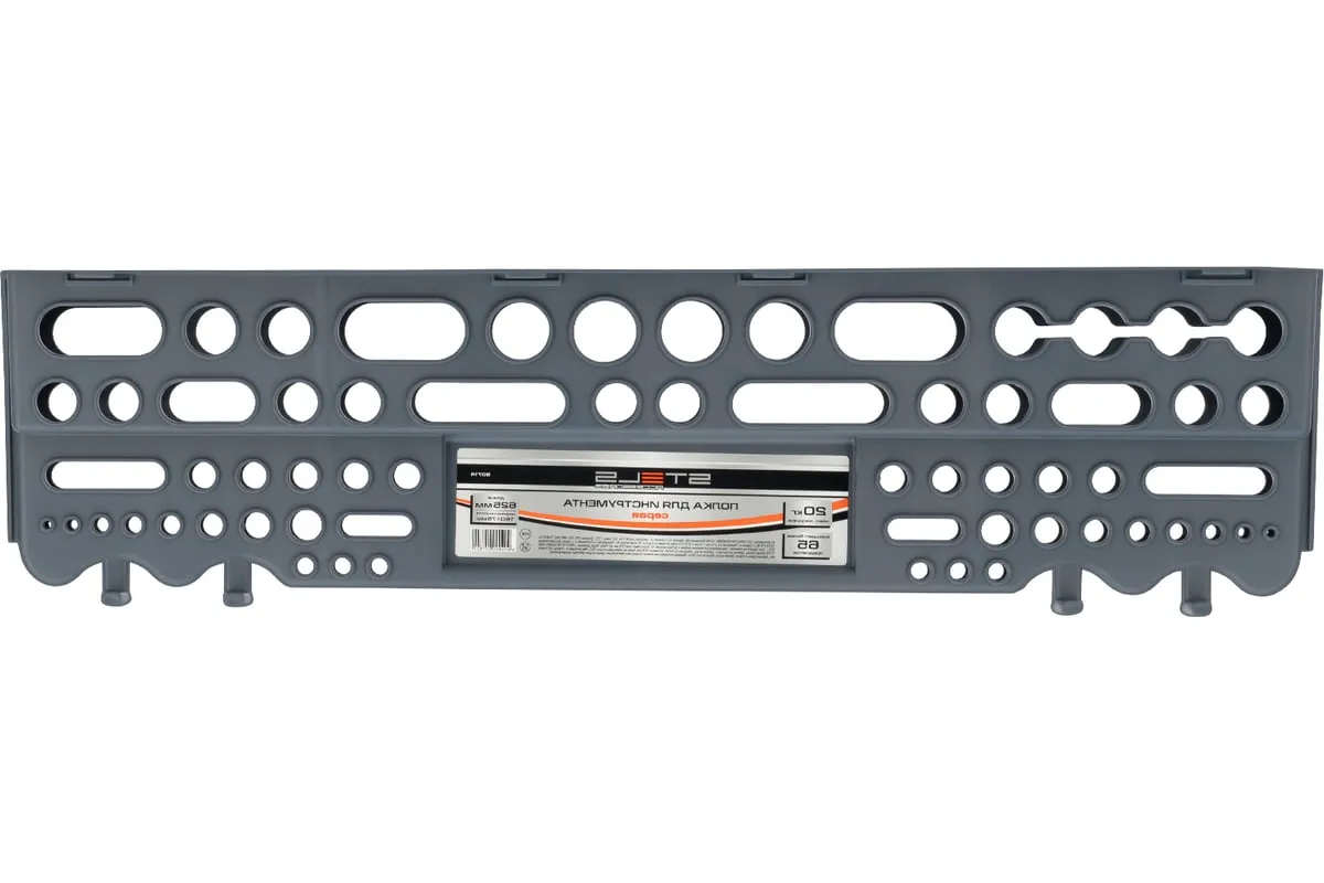 Серая полка Stels 90714 длиной 625 мм позволяет организовать место для практичного и компактного хранения инструментов. На ней можно разместить рабочий инвентарь и всегда держать необходимые предметы под рукой. За счет настенного крепления полка обеспечивает возможность подвесного хранения.
