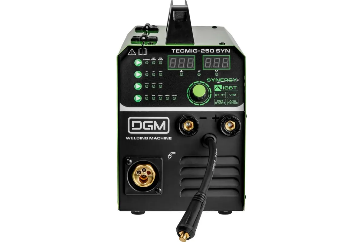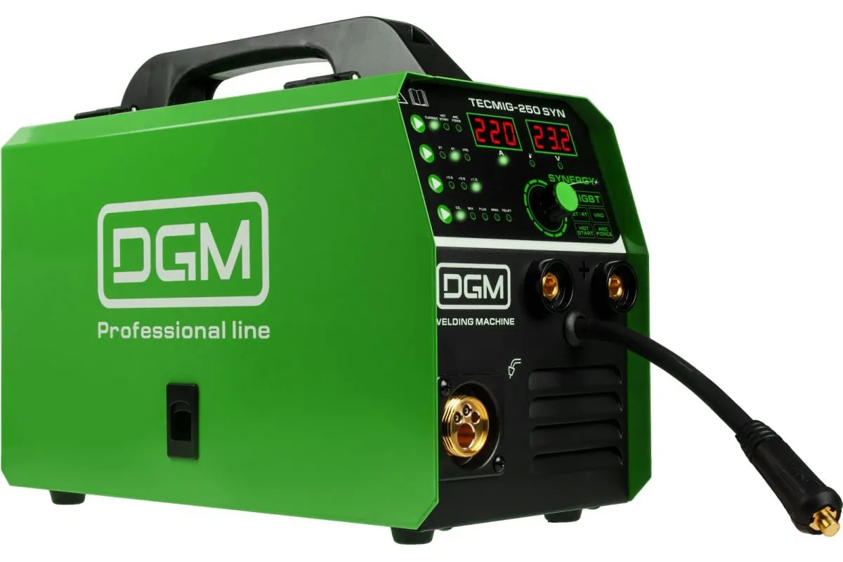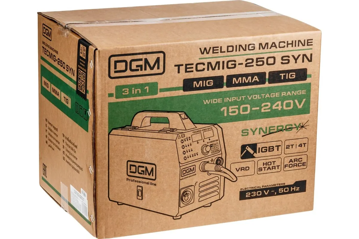 3-в-1 - полуавтоматическая сварка, ручная сварка электродами, TIG сварка; cварочная горелка с евроразъемом в комплекте СИНЕРГИЯ - выбери параметры сварки (режим сварки, диаметр проволоки, 2Т/4Т), с помощью регулятора подстрой интенсивность работы кабель смены полярности для сварки в среде защитных газов или порошковой проволокой FLUX; - для полуавтоматической сварки: режимы 2T/4T регулировка динамики дуги для режима MIG максимальный размер катушки с проволокой - 5 кг/200 мм
