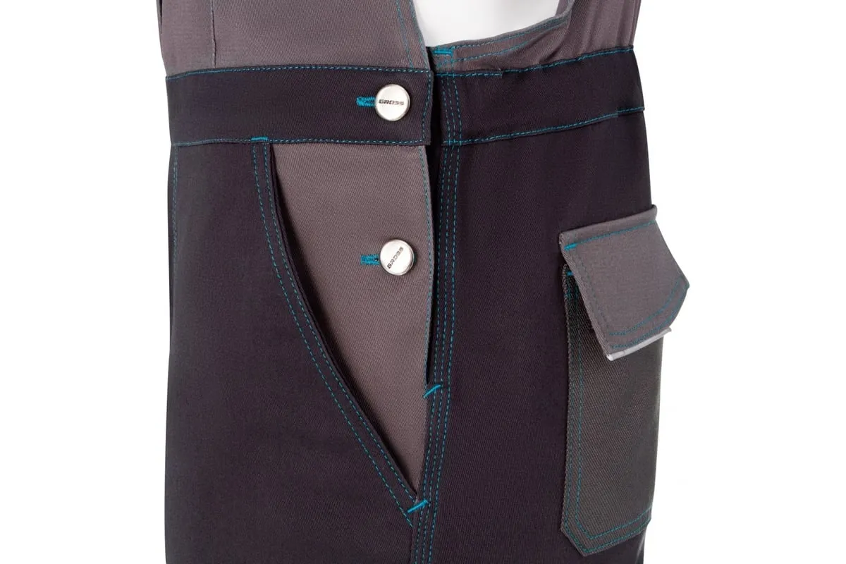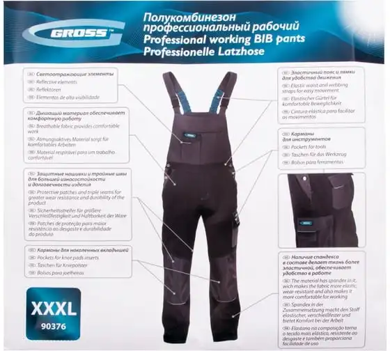 Полукомбинезон Gross 90375 размера XXL, состоящий на 97% из хлопка и на 3% из спандекса, защищает рабочего от производственных загрязнений и мелких травм. Используется в теплое время года и в отапливаемых помещениях.