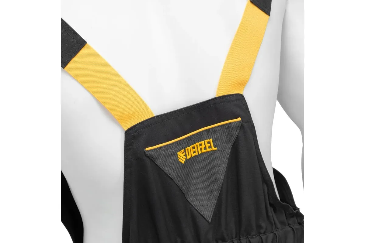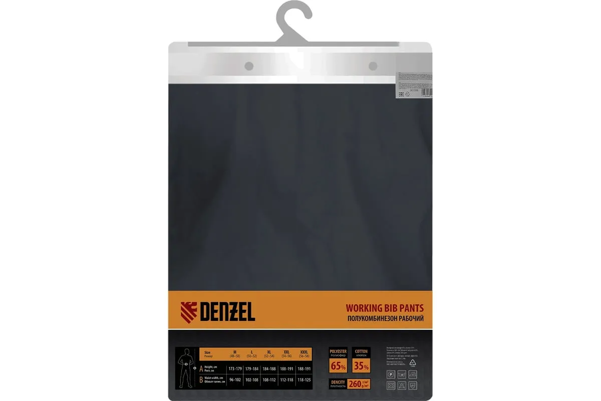 Рабочий полукомбинезон Denzel 90391 размера XXXL рассчитан на рост 186-192 см и используется для выполнения профессиональных строительных, ремонтных и производственных работ в теплое время года или в отапливаемом помещении. Защищает пользователя от общих производственных загрязнений, нетоксичной пыли, ветра и незначительных механических воздействий. Изготовлен из ткани плотностью 260 г/м2 (65% полиэстер, 35% хлопок). За счет наличия хлопковых волокон в составе ткань хорошо пропускает воздух и приятна на теле, полиэстер обеспечивает устойчивость к истиранию. Полукомбинезон выполнен в практичном темно-сером цвете.