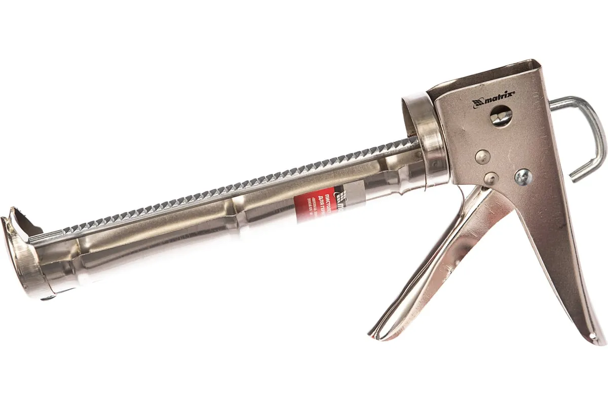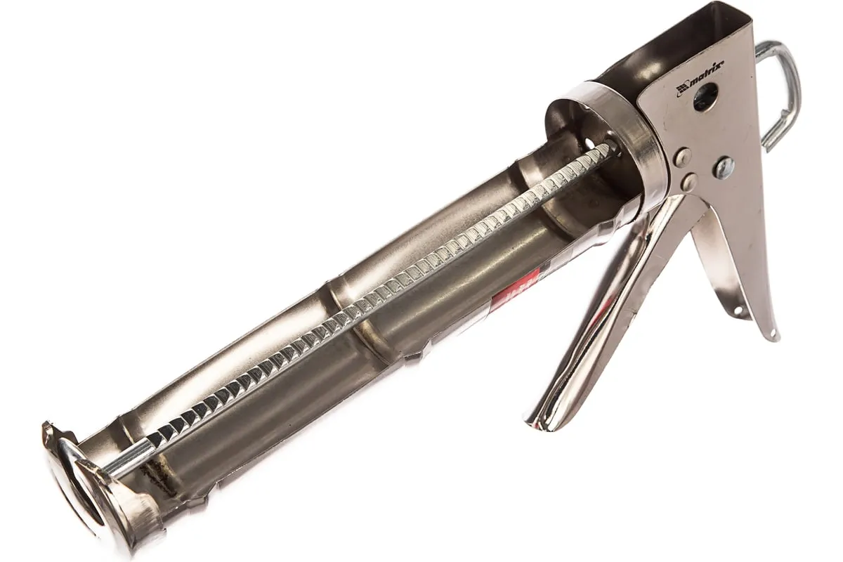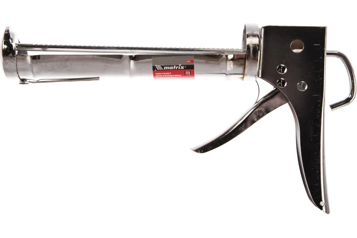 Хромированный пистолет для герметика Matrix 88640 полуоткрытого типа, с зубчатым штоком диаметром 7 мм, предназначен для установки стандартной тубы с клеем или герметиком объемом 310 мл. Зубчатый шток позволяет точно дозировать и аккуратно наносить смесь. Пистолет пригодится строителям, сантехникам и мастерам по ремонту, а также будет полезен в быту.