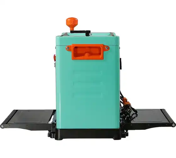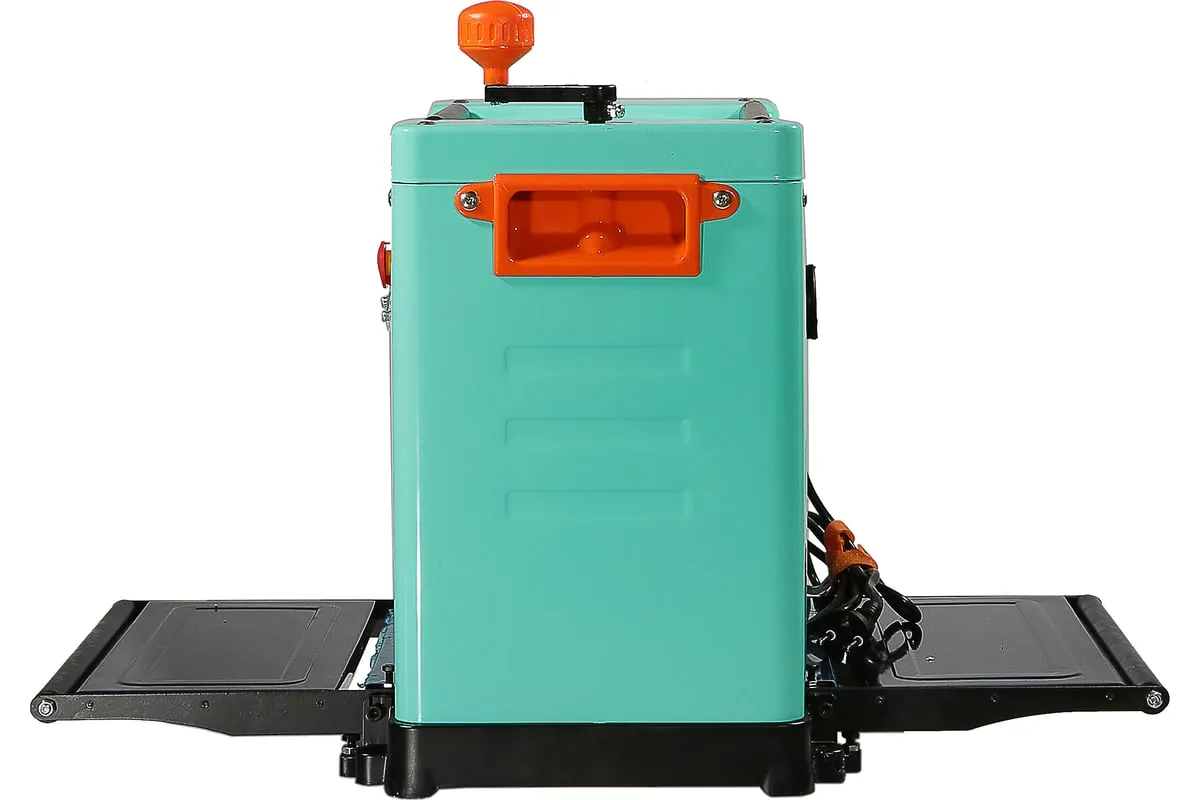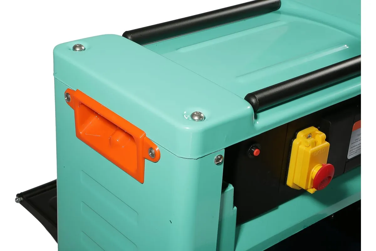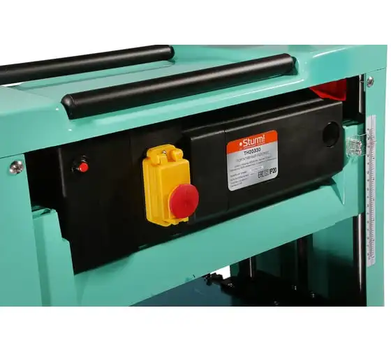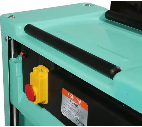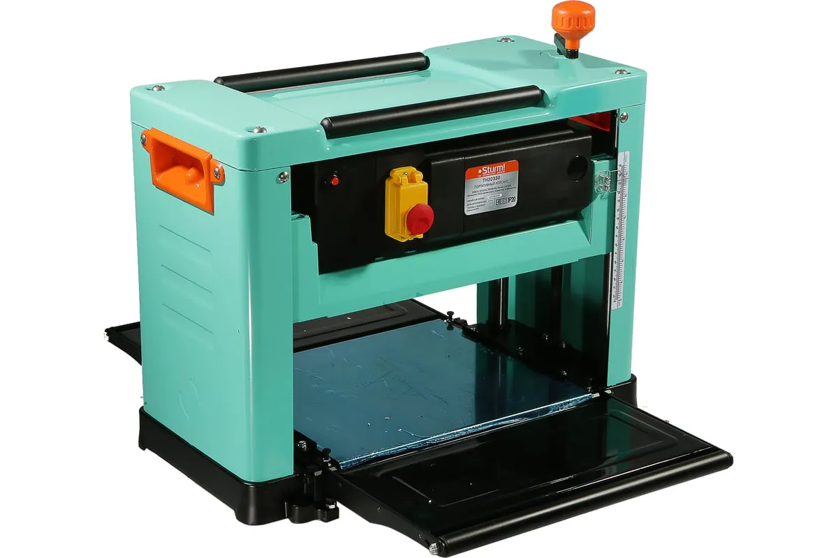 Портативный рейсмус Sturm TH20330 используется для строгания деревянных заготовок шириной до 330 мм. Рейсмус оснащен двумя удлинителями стола, оснащенными специальными роликами для облегчения подачи габаритных заготовок и их поддержки на входе и выходе. Электромагнитный выключатель обеспечивает дополнительную безопасность и исключает риск случайного включения при перебоях в электросети. Надежная ременная конструкция привода строгального барабана и цепная конструкция привода автоподачи увеличивают общий срок службы станка. Станок оснащен боковыми рукоятками для удобства переноски в рабочей зоне. Ножи из быстрорежущей стали HSS подходят для обработки пород древесины разной степени твердости.