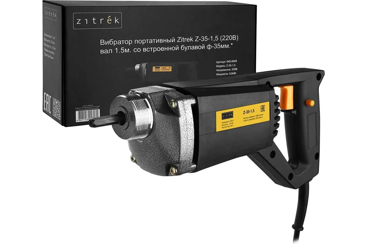 Вибратор портативный Zitrek Z-35-1,5 служит для уплотнения бетонных смесей, укладываемых в небольшие массивы, монолитные, густо и среднеармированные конструкции с шагом между стержнями арматуры не менее 1,5 диаметра вибронаконечника. Для изготовления бетонных и железобетонных изделий для сборного строительства, а также для виброобработки технологических швов сборных конструкций.