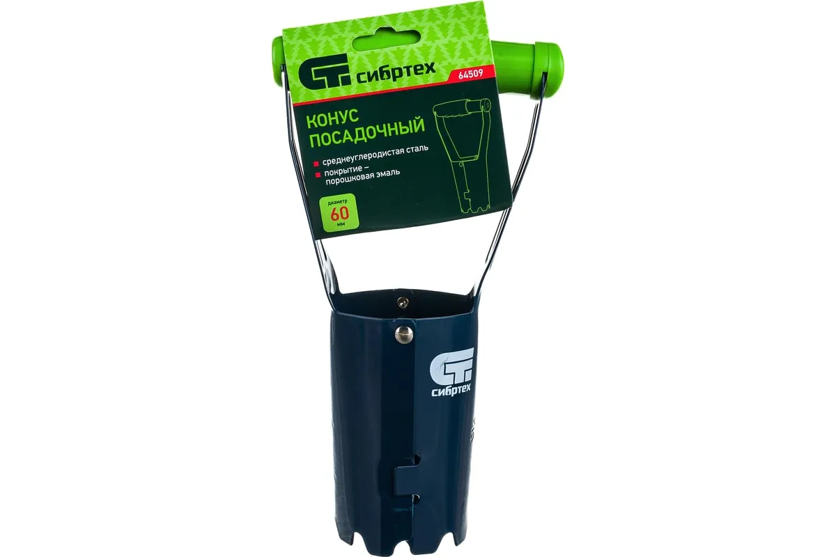 Посадочный конус, порошковое покрытие СИБРТЕХ 64509 упрощает высадку молодых саженцев или луковичных растений. Конус сразу же выбирает необходимое количество грунта, оставляя лунку. Этомногократно уменьшает время посадки. Сталь покрыта порошком для защиты от коррозии.