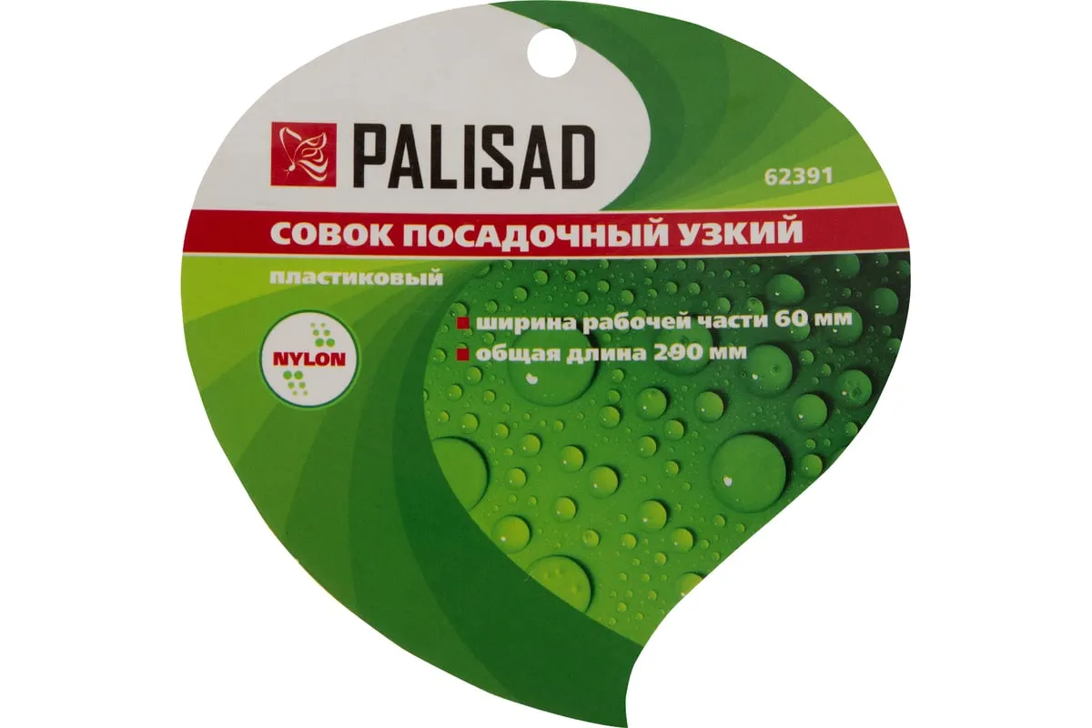 Узкий посадочный совок Palisad NYLON 62391 размером 60 х 290 мм — инструмент для пересаживания растений. Удобен для выкапывания узких лунок. Подходит также для подсыпания земли в рассадные емкости. Изготовлен из материала, содержащего нейлон, что обеспечивает ему необходимую прочность. Совок пригодится дачникам и садоводам.