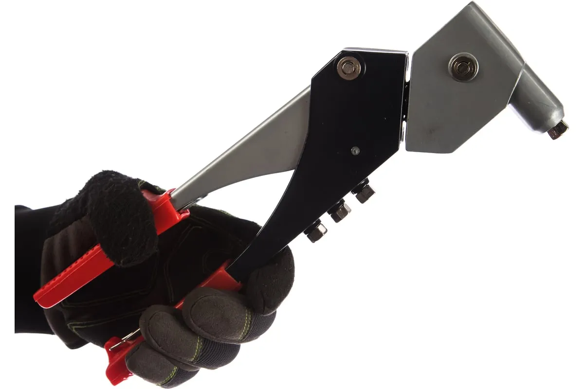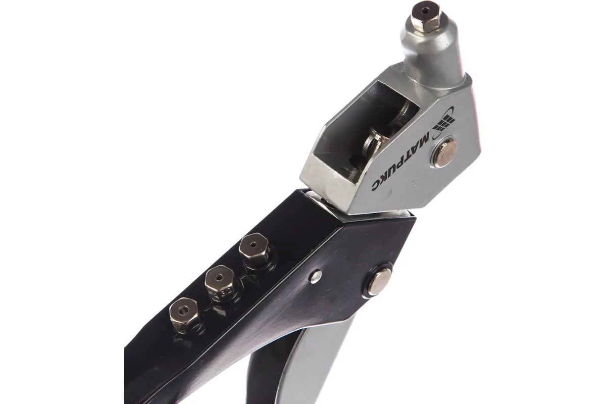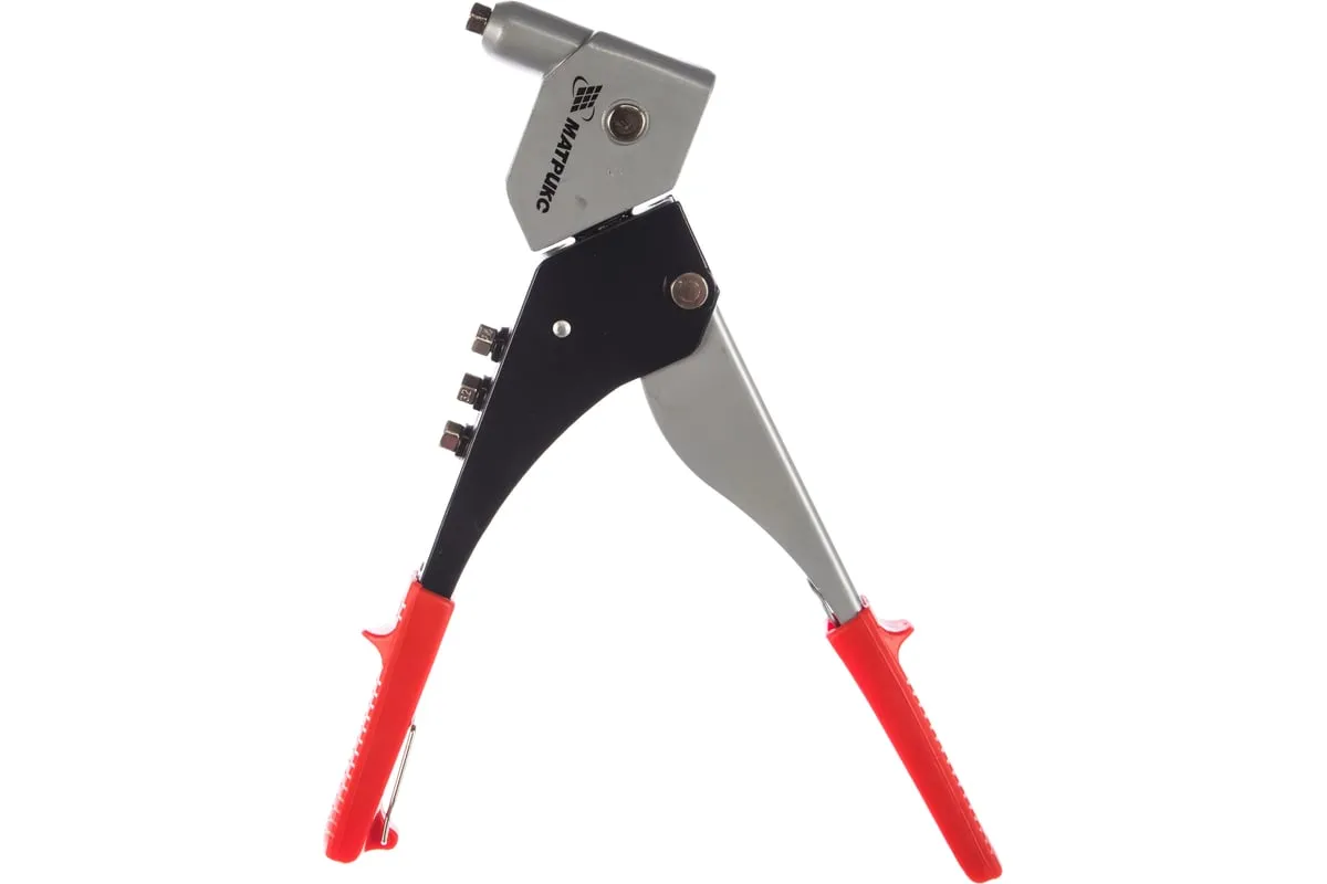 Поворотный заклепочник MATRIX 40533 применяется для надежного соединения поверхностей заклепками. Оснащен поворачивающейся головкой, что позволяет работать в труднодоступных местах. Специальная скоба на конце рукояток упрощает хранение заклепочника. При изготовлении корпуса использовалась конструкционная сталь, что обеспечивает прочность инструмента.