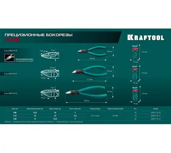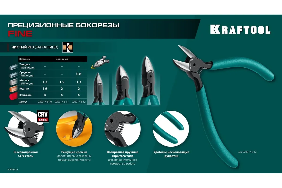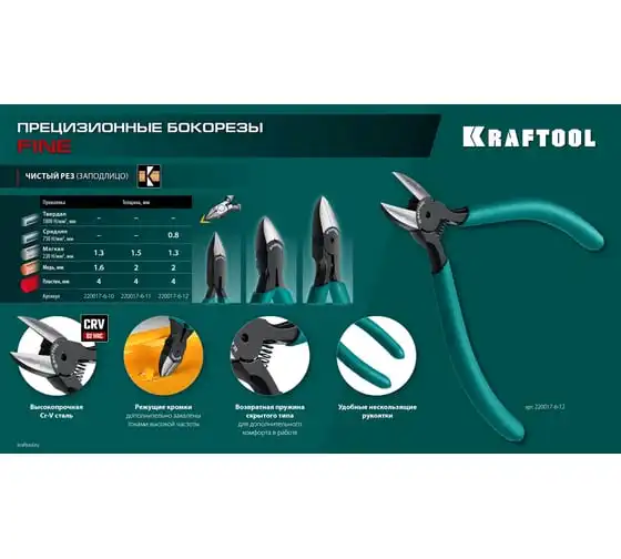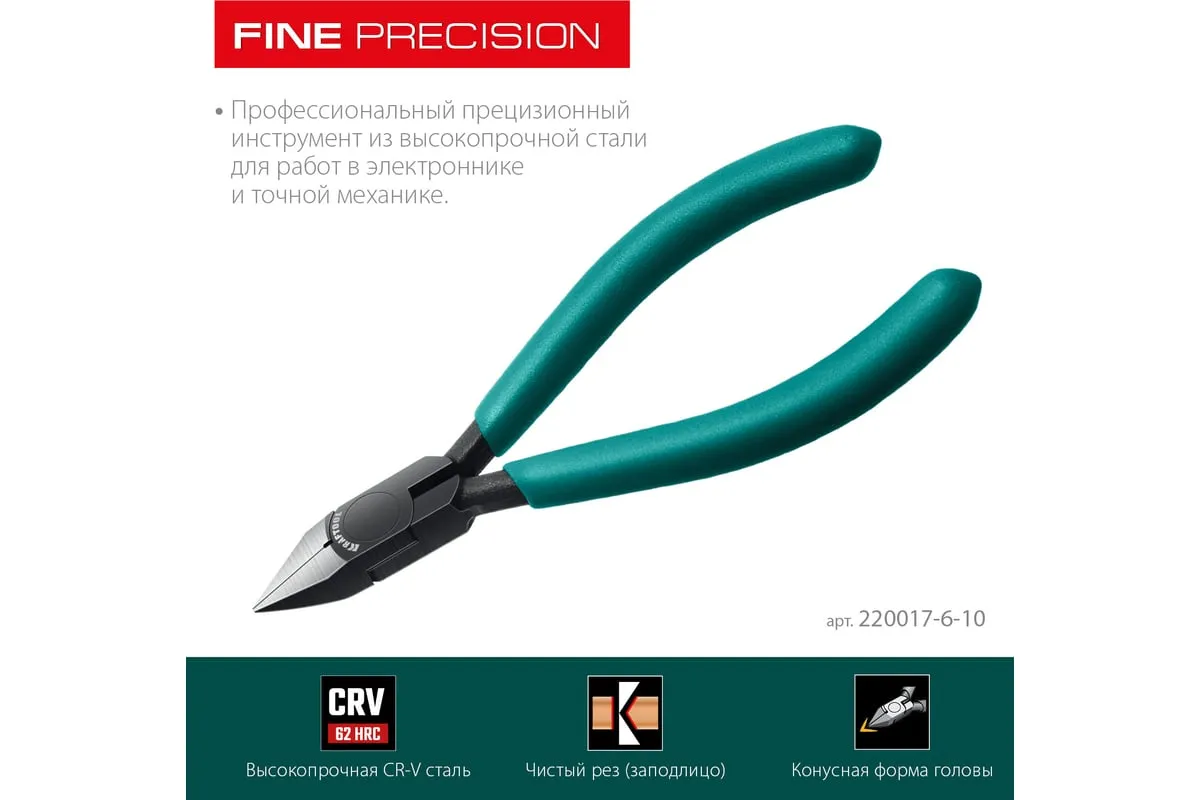 Предназначены для выполнения работ в электронике и точной механике. Специальный угол заточки для мощного реза. Режущие кромки дополнительно закалены токами высокой частоты.