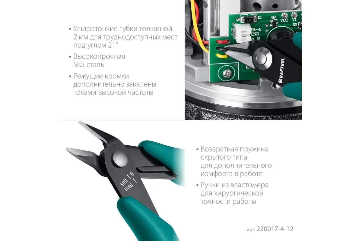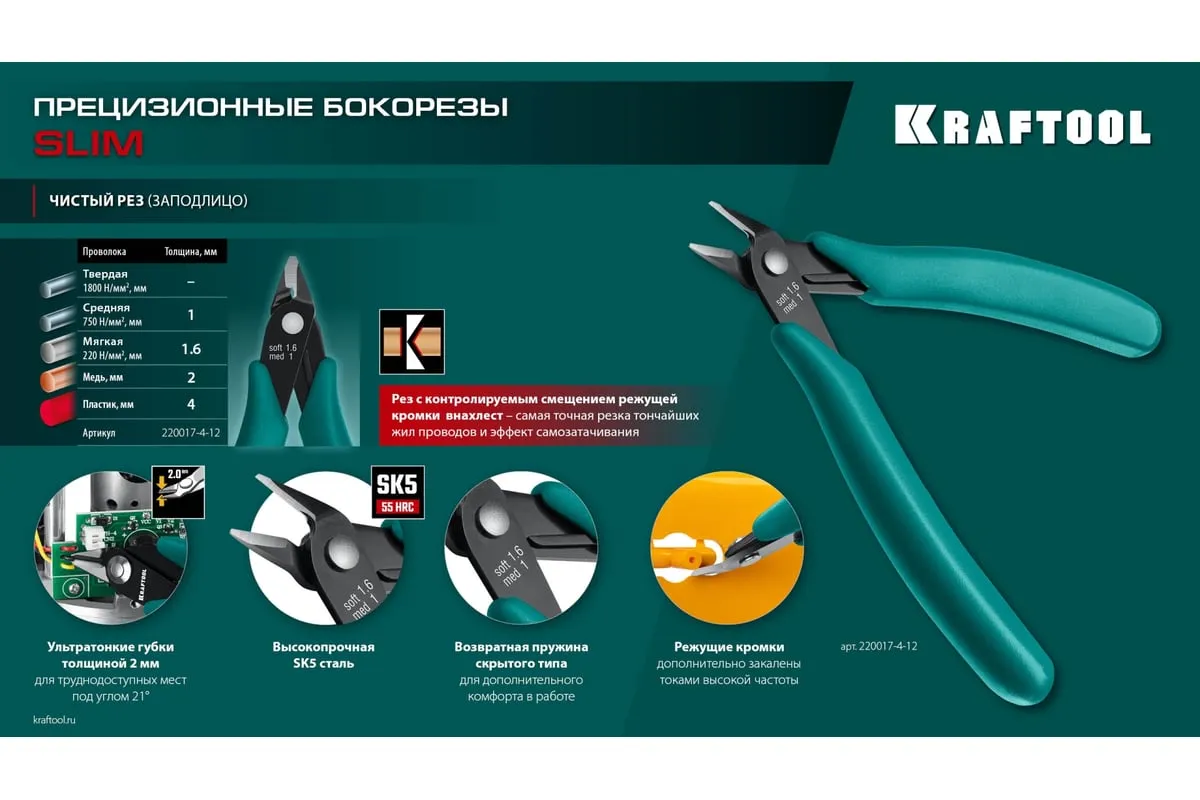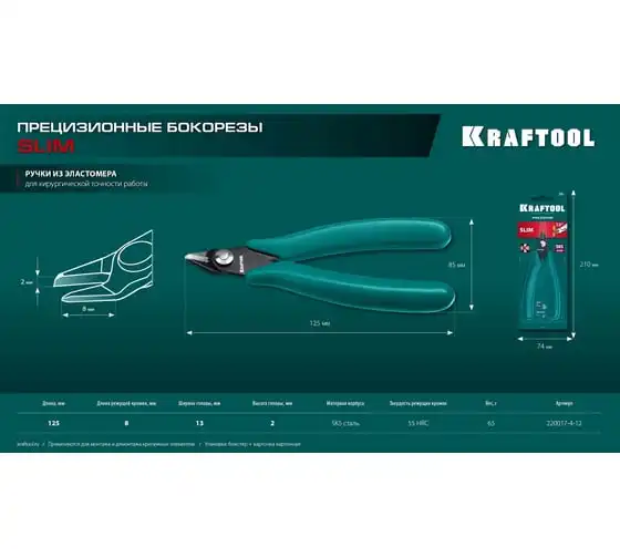 Профессиональные прецизионные бокорезы предназначены для работ с точной механикой и разрезания проволоки. Ультратонкие губки толщиной 2 мм для труднодоступных мест Губки расположены под углом 21° Режущие кромки дополнительно закалены токами высокой частоты Высокопрочная CrV сталь Чистый рез заподлицо Обливные рукоятки Возвратная пружина