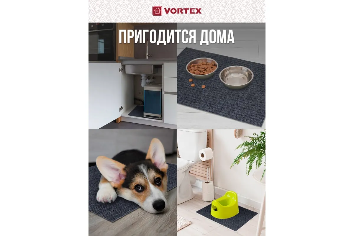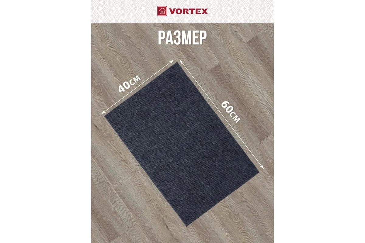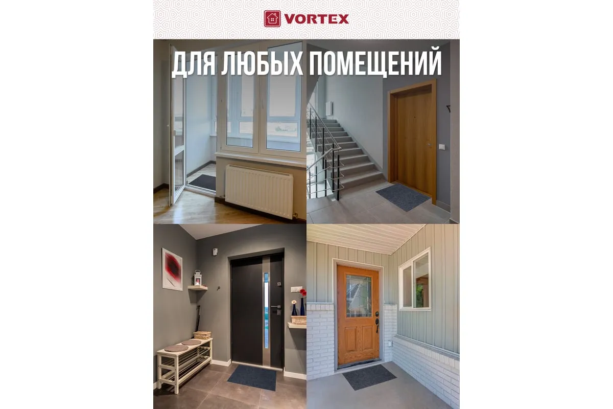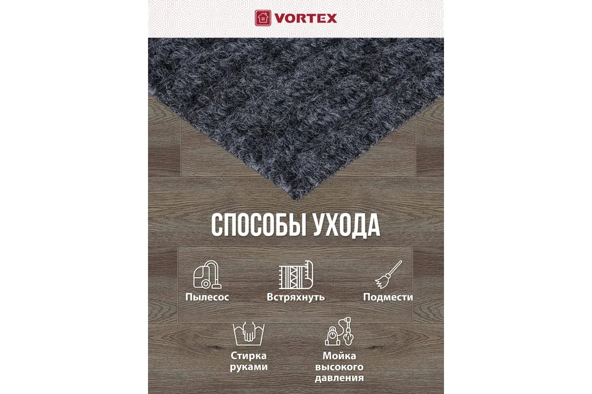 Коврик очищает обувь от грязи и задерживает влагу при входе в помещение. Без подложки.