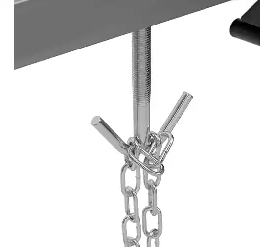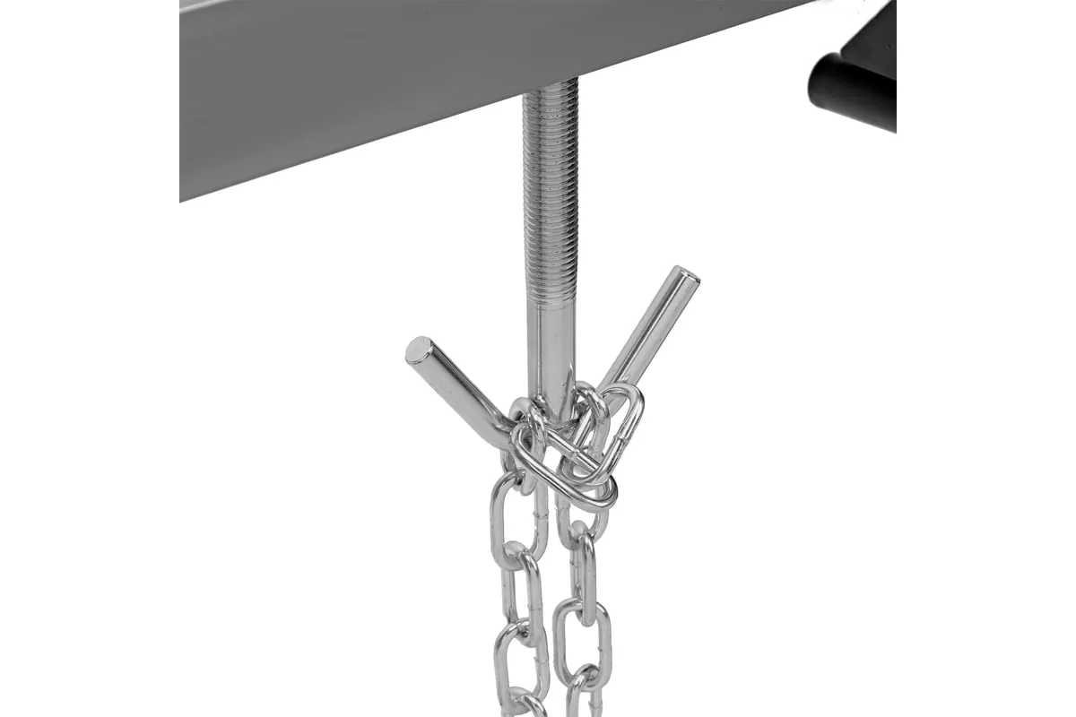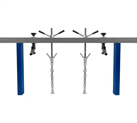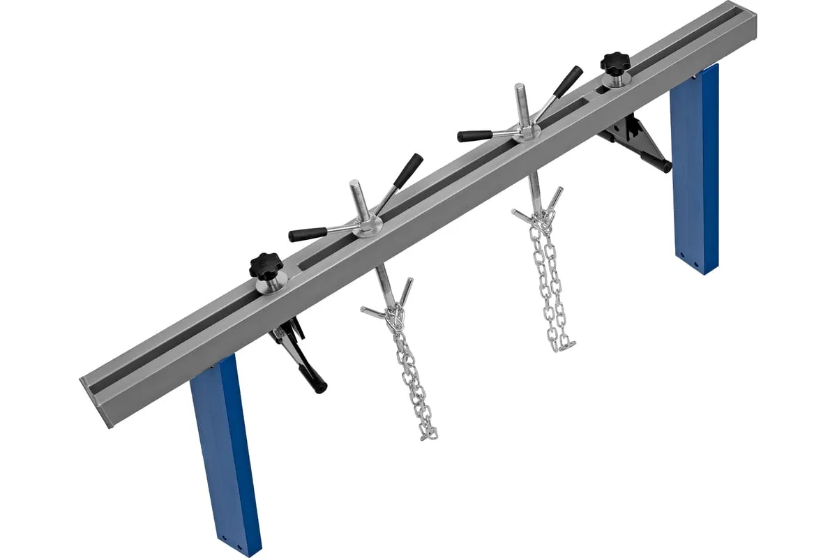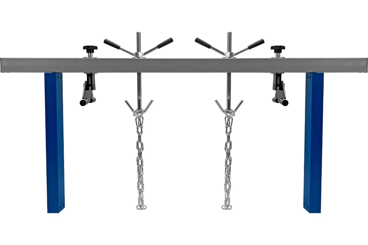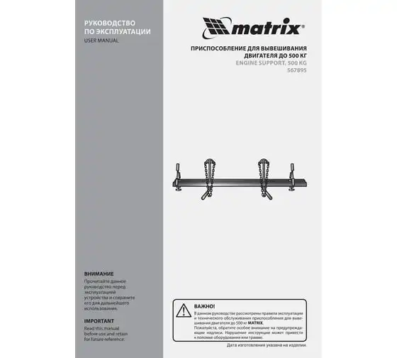 Приспособление для вывешивания двигателя MATRIX 500 кг 567895 - профессиональное устройство, которое используется для вывешивания двигателя в моторном отсеке автомобиля при проведении ремонтных работ. Две прочные цепи оснащены специальными фиксаторами, за которые крепится двигатель. Отличительно особенностью является возможность подвешивания одновременно двух грузов. Конструкция защищена от образования коррозии.
